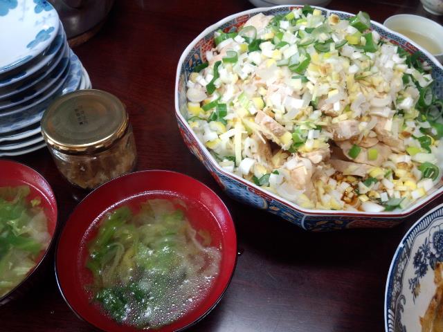 今日の織屋の賄いは、かしわを蒸し煮にしたものにねぎ生