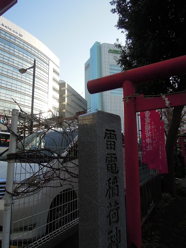 新宿四丁目交差点のそばに鎮座する雷電稲荷神社。