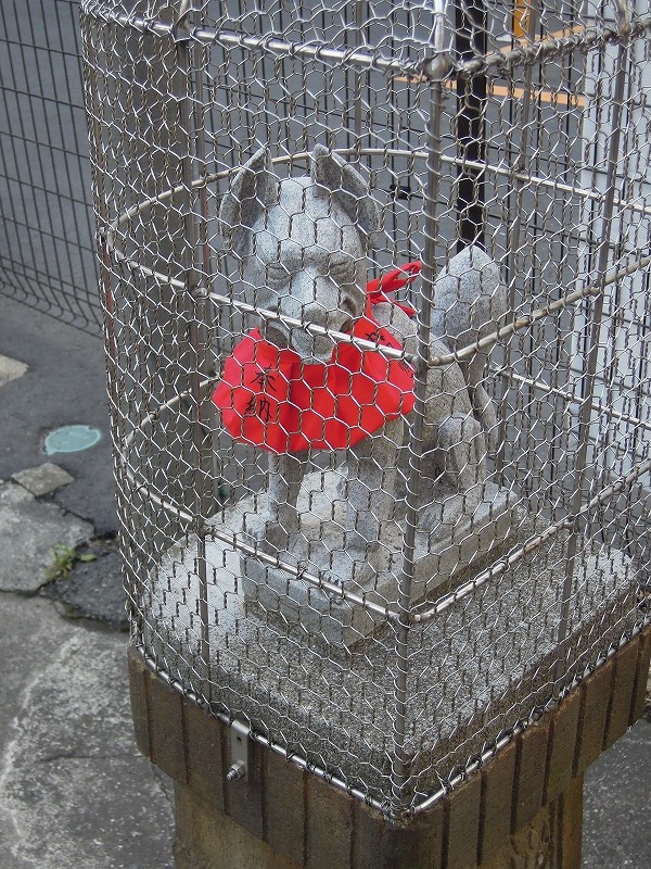 このお狐さんは夜中に動き回る伝説とかあるのかしら。御所の鬼門の猿のように。