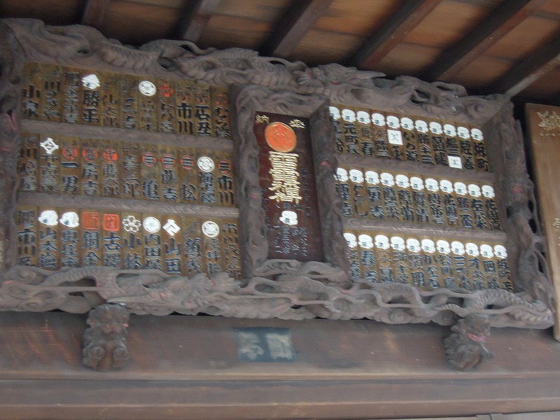 赤い丸の中に御幣を担いだ猿がいるのですが、この猿は夜な夜な、外をウロウロ歩いては通りかかる人を仰天させていたのでもう外に出ないように金網を張られたというお話があります。