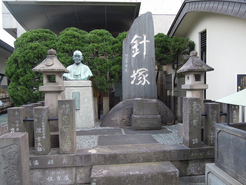 針塚もありました。横には小見外次郎さん(和裁で唯一の人間国宝にならはったお人)の胸像。
