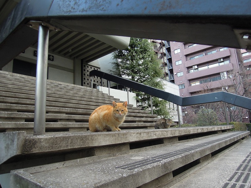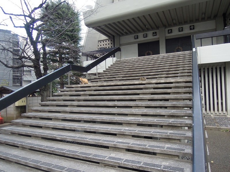 ああ、どこでも癒しの風を運んでくれるねこちゃんが、本堂への階段でひなたぼっこ。