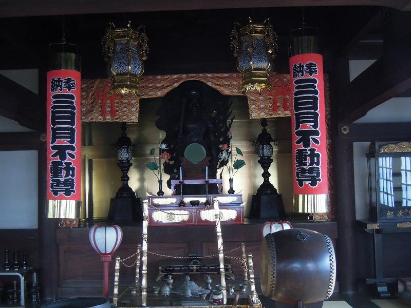 寺の言い伝えでは、高尾山薬王院に不動明王を奉納するために甲州街道を運搬中に休息のため立ち寄った境内で盤石のごとく動かなくなったので、不動堂を建立し安置したそうです。
