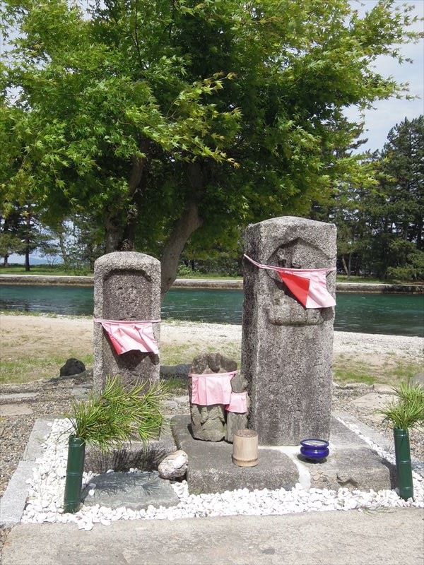 その天橋立に行くべしと歩いているときにこちらのお地蔵さんをみかけました。バックに運河を控えとても気持ちの良いところに立っています。