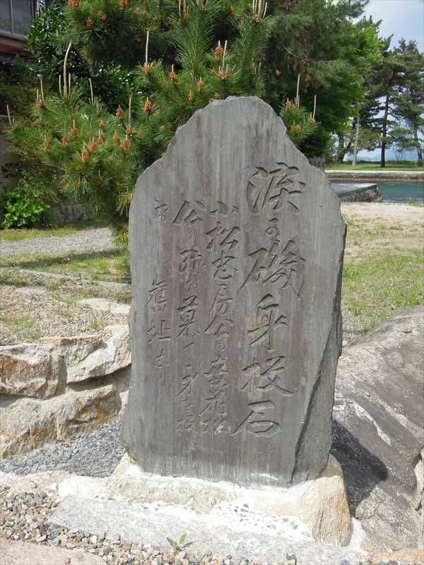 この磯は涙ヶ磯と呼ばれています。そしてこの近くに置かれている石が身投げ石と呼ばれています。これらには2つの伝承が伝わっています。謡曲の「丹後物狂」に関連した伝承と江戸時代後期の「丹哥府志」に記された伝承。