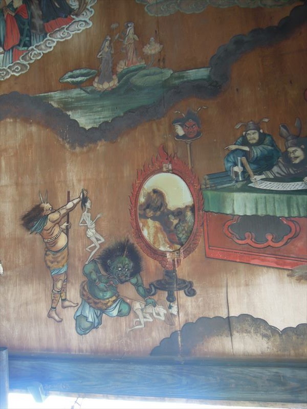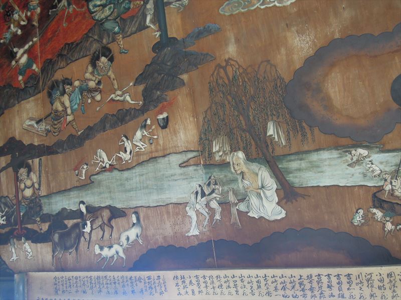 ↑奪衣婆さんが服を剥ぎ取っています。そのほかにも恐ろしい景色が沢山。