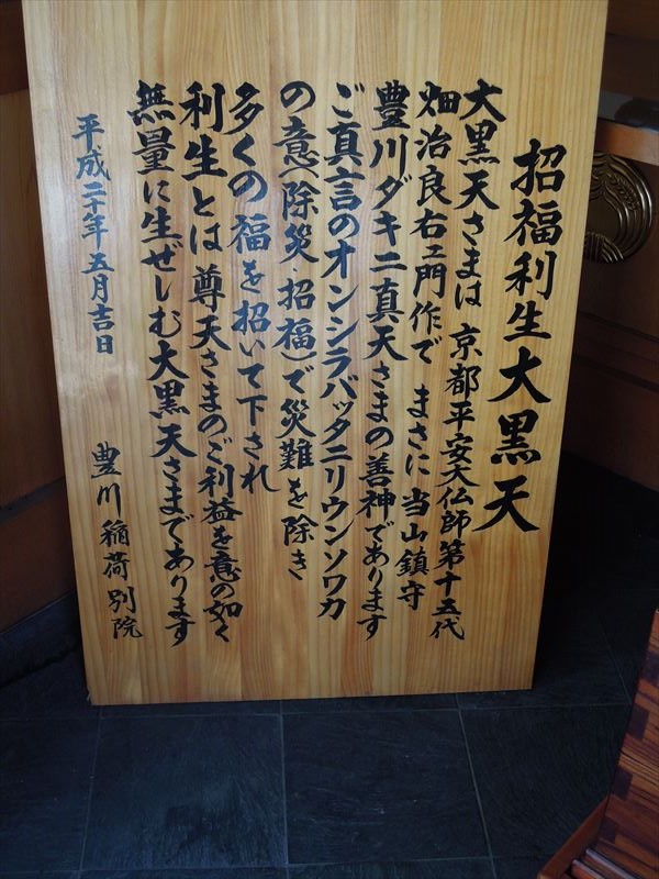 大黒天様は京都平安大仏師第15代畑治良右ェ門作で まさに豊川吒枳尼真天さまの善神であります