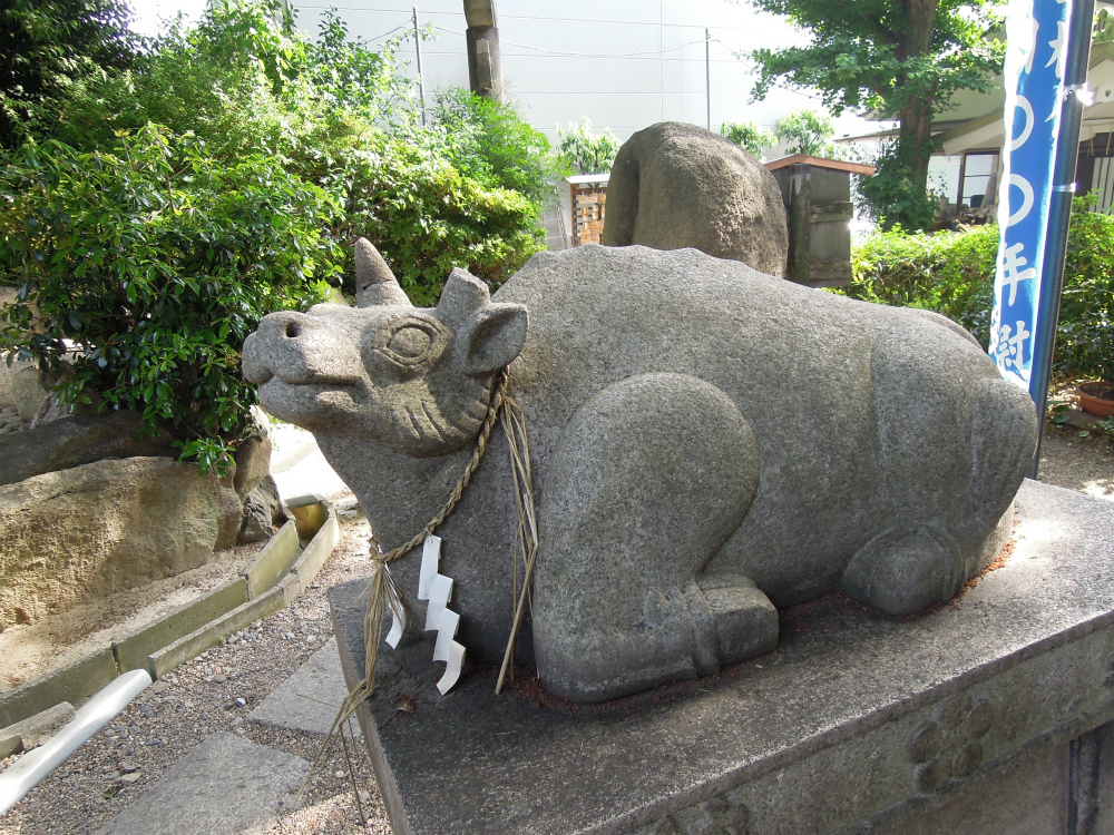 牛像もあるので天神さんも入っているのかしらと思ったら「梅鉢紋」がばっちり。