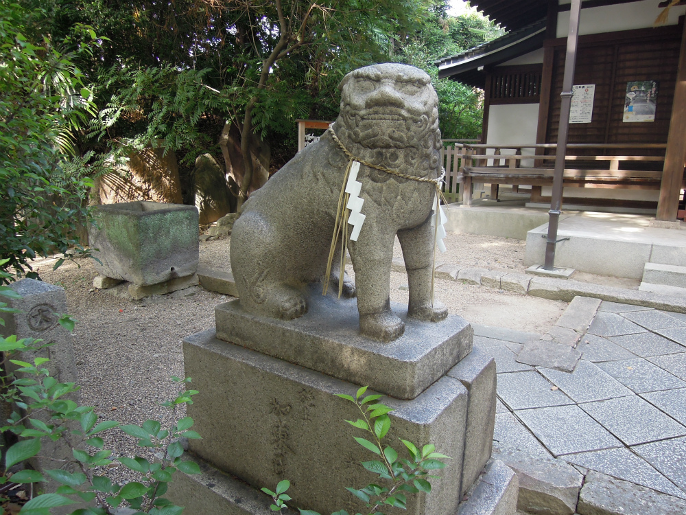 この狛犬さんもとても個性的。上が吽さんで下の狛犬が阿さん。