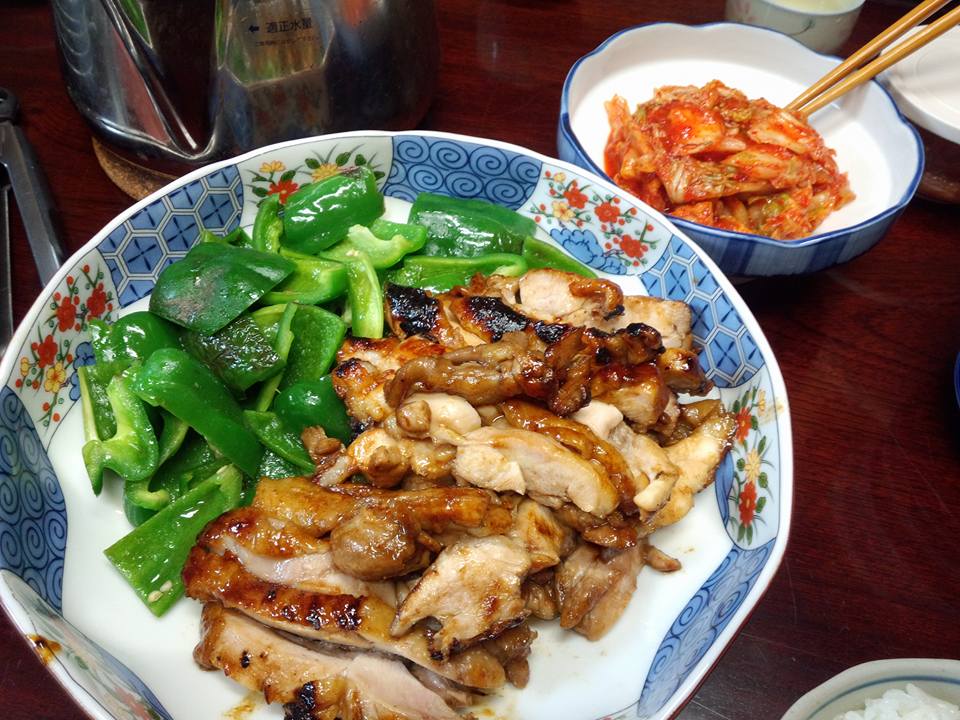 今日の織屋の賄いはかしわを甘酸っぱく焼いたちょっとジャンクな一品。