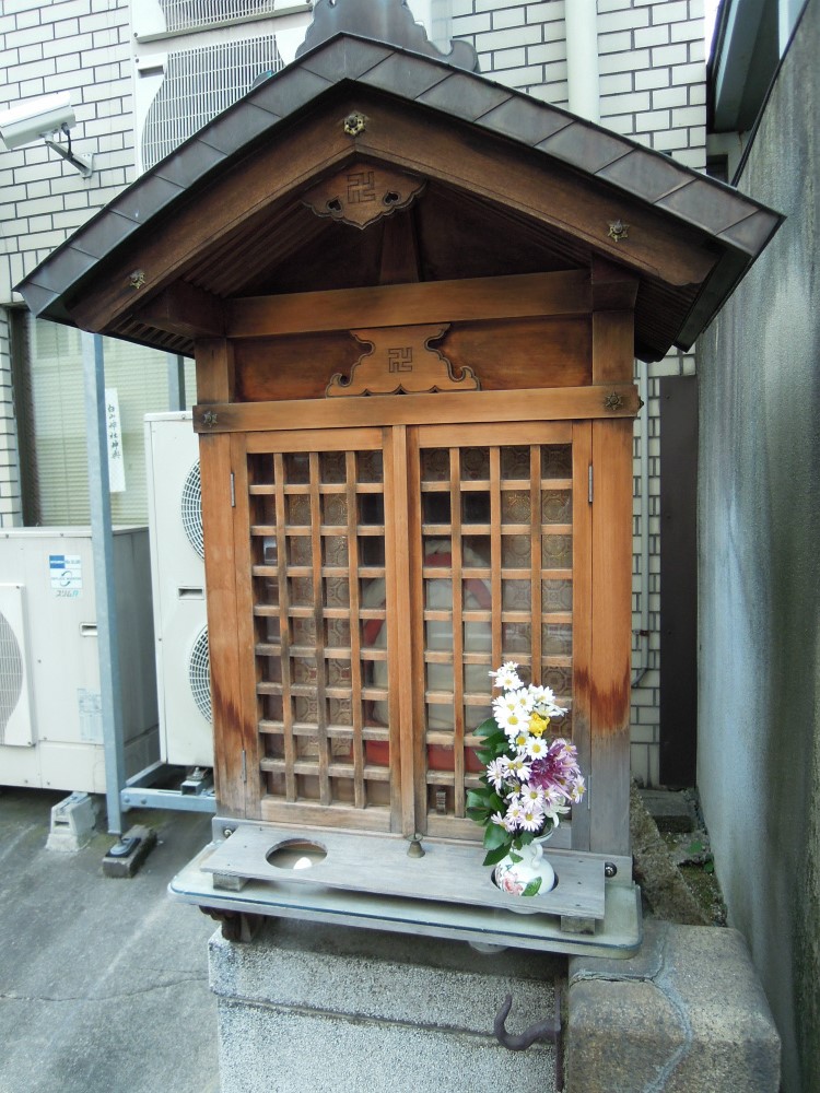 マンションの室外機の前に鎮座ましますお地蔵さん。夏は熱い風にあおられ冬は冷たい風が来ますね。中々過酷な環境です。