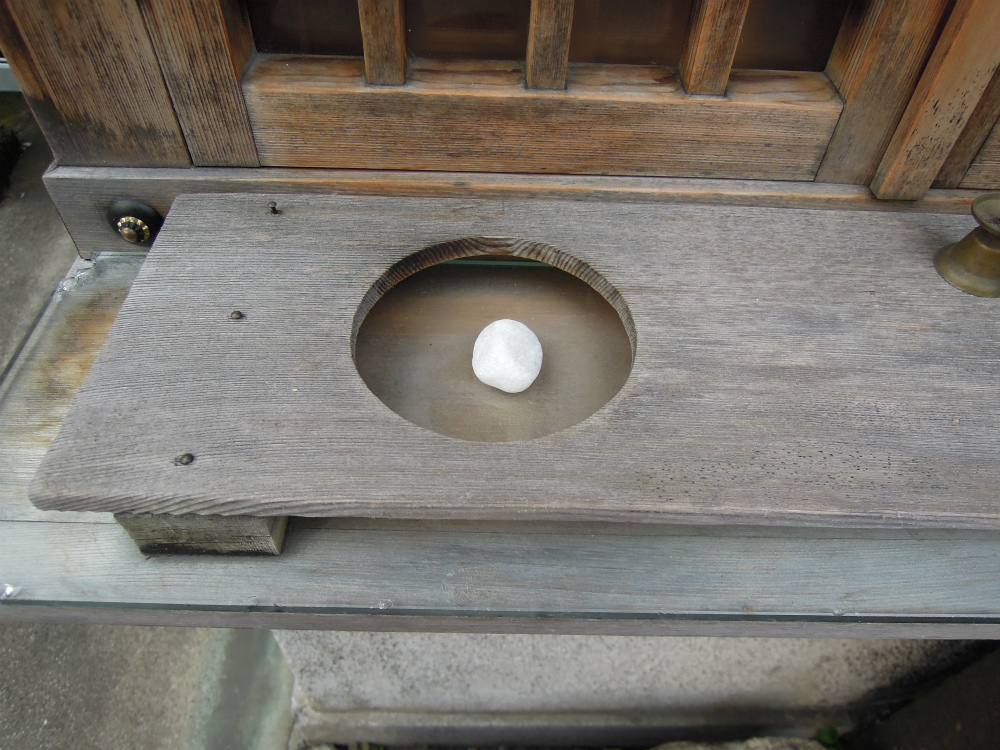 花瓶台だと思われるところにぽつんと置いてあった真っ白い可愛らしい石。こういう石好きです。たなごころに程よく納まり持っていたら落ち着きそうです。