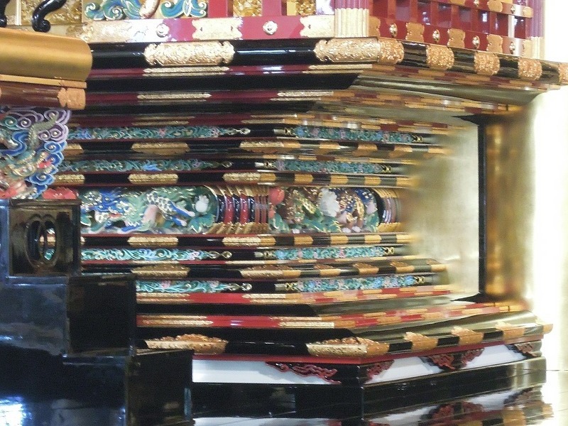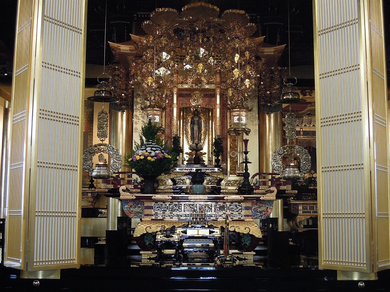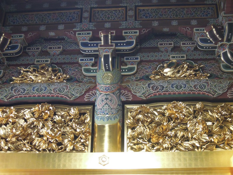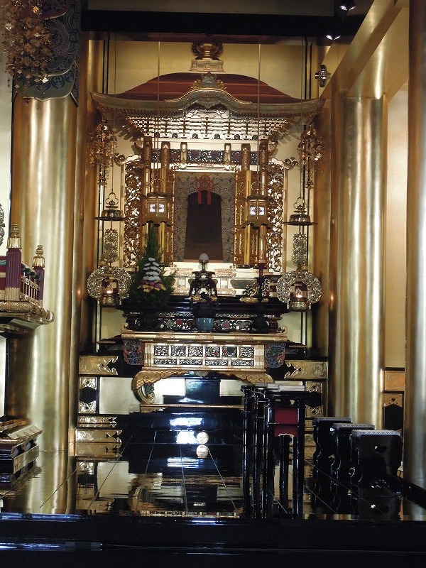 ああ、奥に金襴の戸帳が見えます。立派ですねえ。遠いけれど。やはり金襴は金の中にあるのが魅力的。