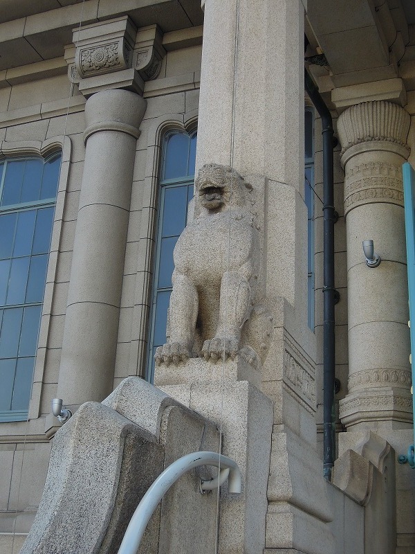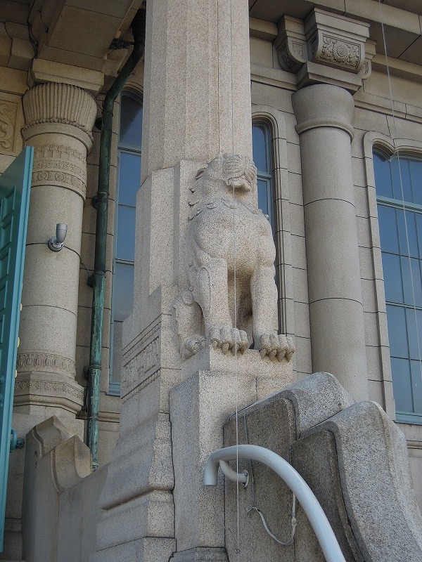 あら?入る時は気がつかなかったけれど、柱に狛犬?狛獅子?