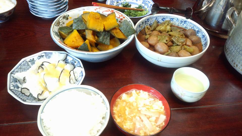 今日の織屋の賄いはかぼちゃの炊いたん、ハムと玉ネギのかき玉スープでございました。義父と社長(義父弟)の好物のさらしくじらも揃えました。