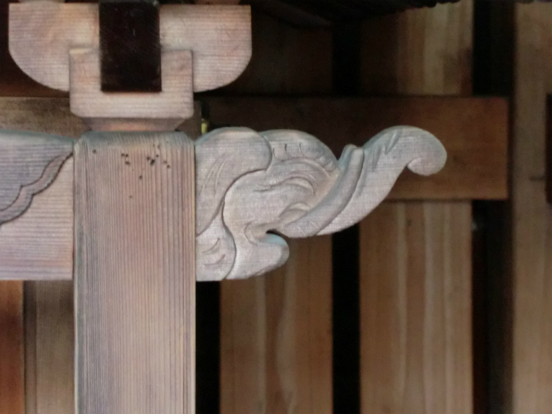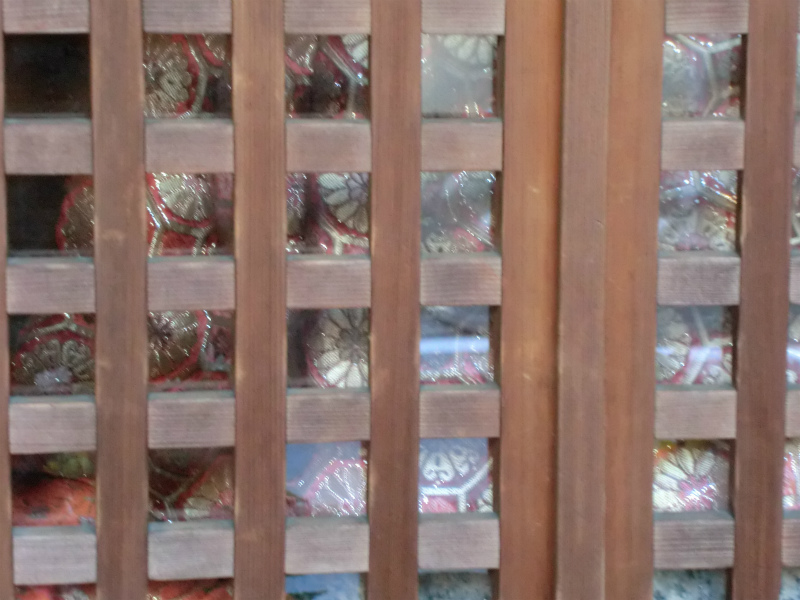 祠の中はほとんど見る事が出来ず、蜀甲唐花の朱地の金襴が掛かっていました。