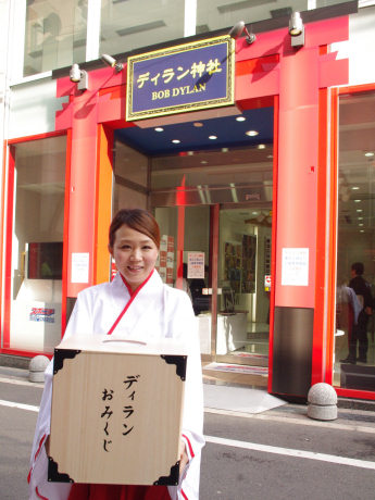 心斎橋鰻谷に「ディラン神社」が現れました。4月に来日公演を行うボブ・ディランを記念して過去の公演ポスター、プログラム、プレスリリース、コンサート会場で販売していたグッズなどの展示や映像の上映などを行うイベントスペースらしいのですが、「神社っていうのがええな」と思いましてん。開催期間は2014年1月31日(金)〜2月5日(水)明後日には終了です。