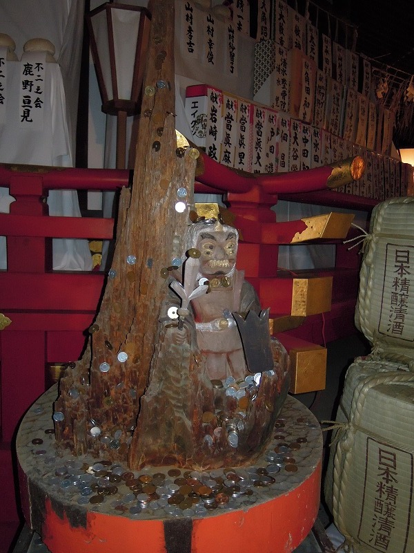 木の隙間に沢山お金がささってます。私も刺してきました。なんだか楽しい。