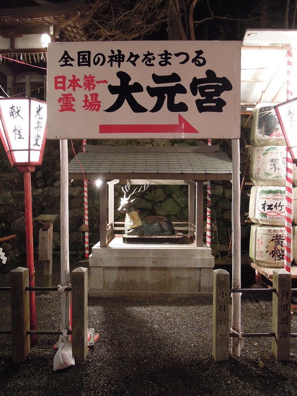 すると本宮に上って大元宮への石段に登る前に金襴発見。若宮社の下です。