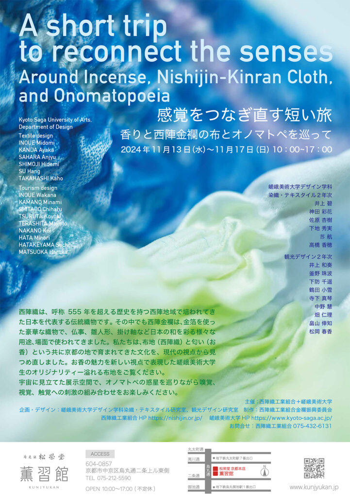 京都嵐山にある美術大学、嵯峨美術大学と西陣織工業組合金襴振興委員会の西陣織と香りのコラボレーション企画イベントです。