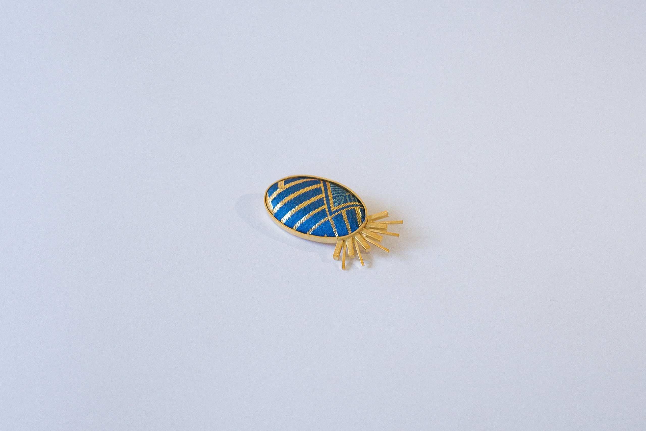 弊社のデザイナーと旧知の仲で、かつ、以前よりとても素敵なジュエリーを作ってはるなと注目していた「COSMOS NOSTALGIE」のデザイナー、岡野さんへ話を持ちかけたのが、西陣織を使った新しいコンテンポラリージュエリーブランド〈尊 MICOTO〉の始まりです。