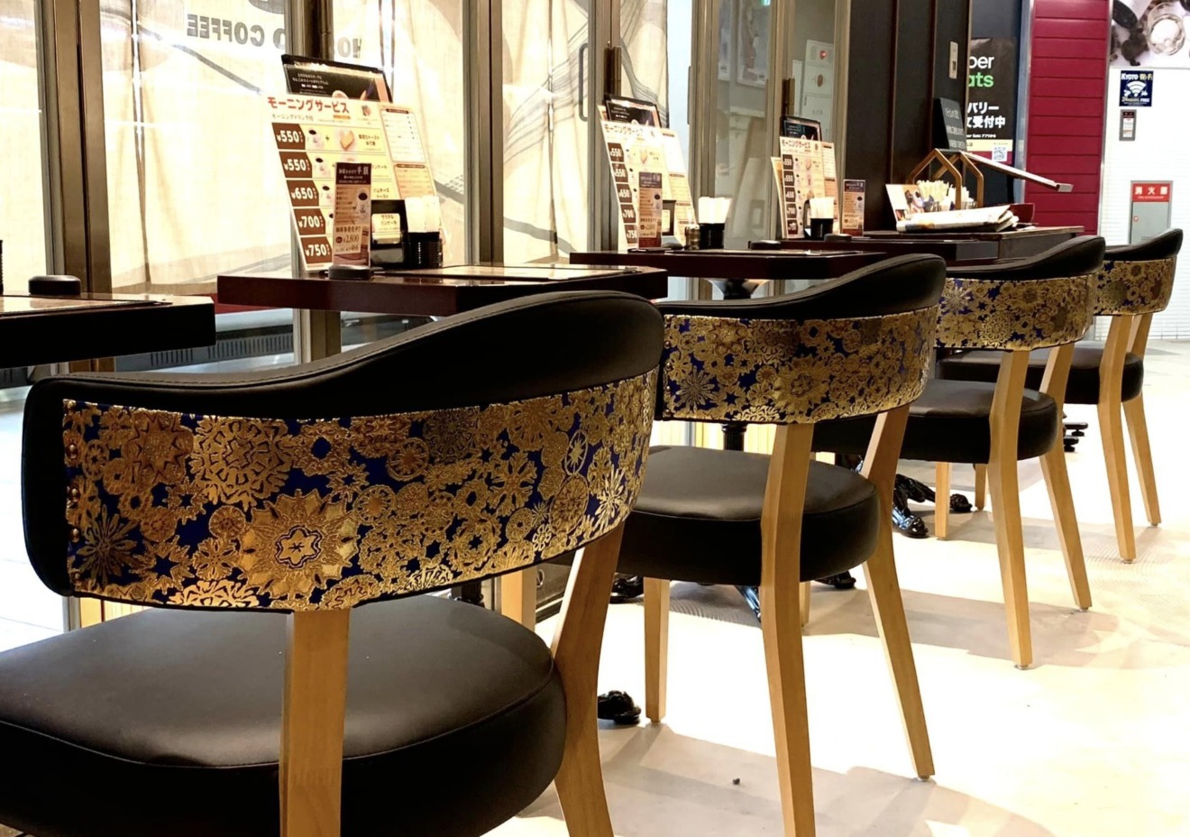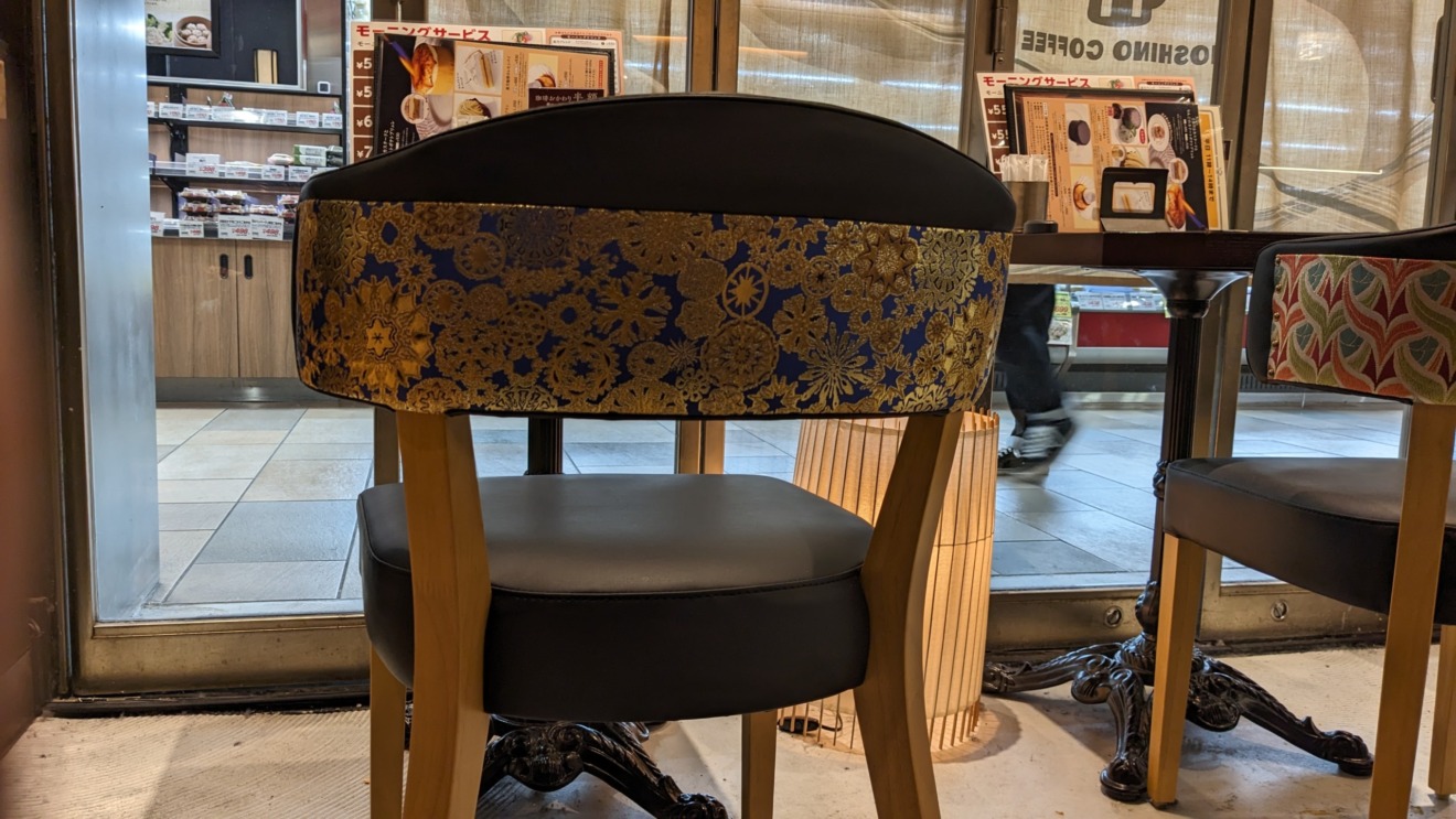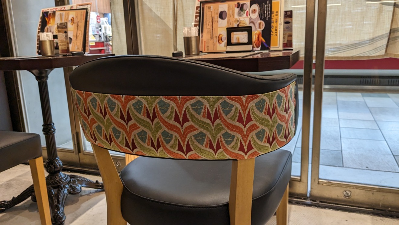 星乃珈琲店 コトチカ四条駅前店における、壁面装飾のための西陣織金襴の制作事例です。