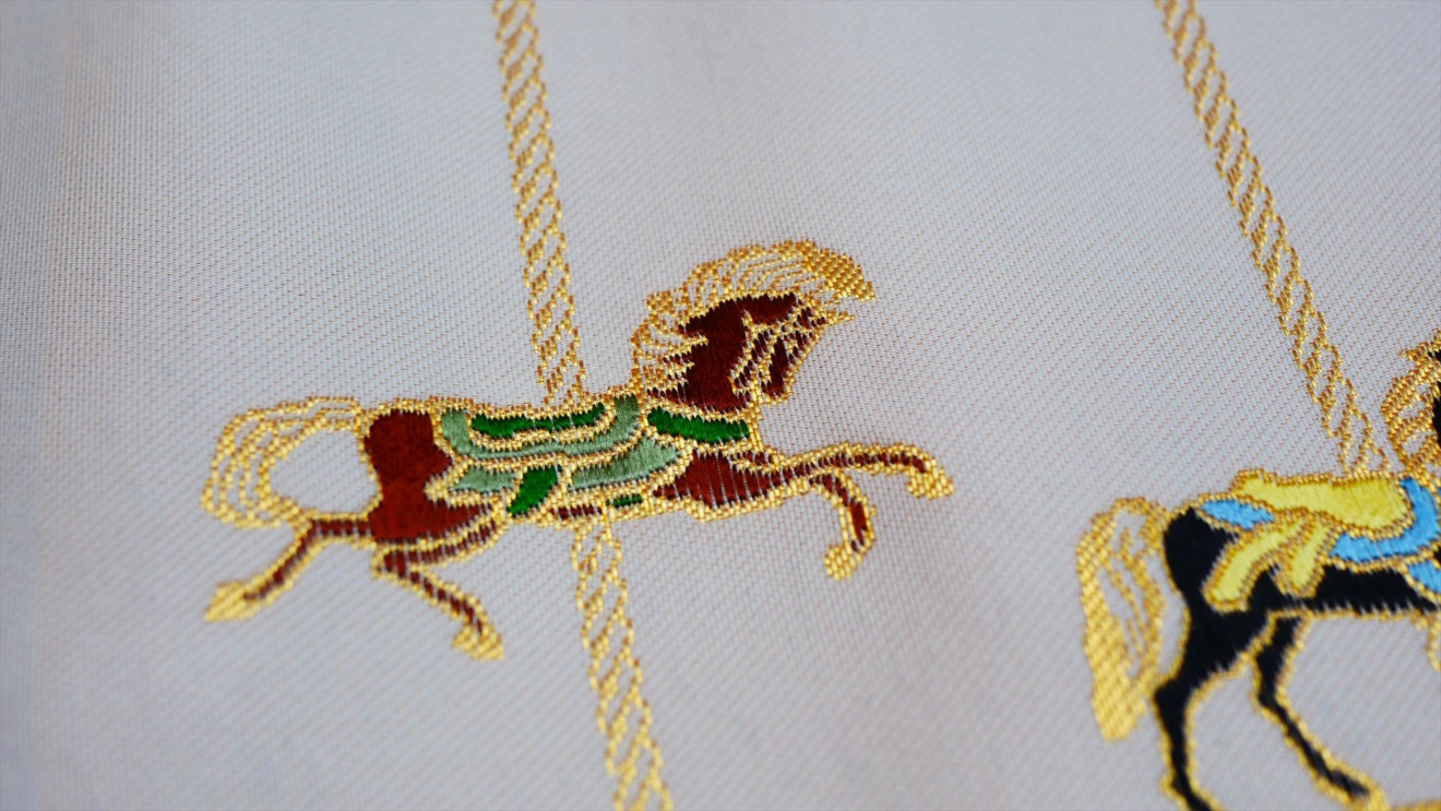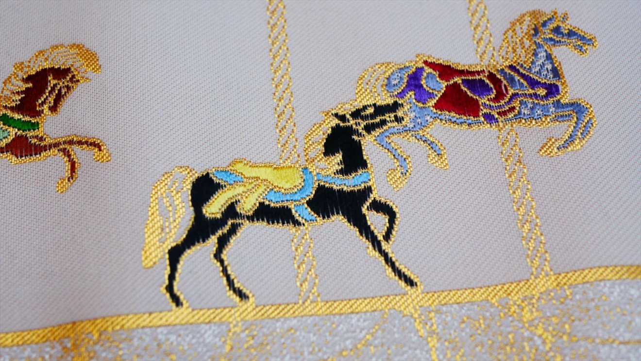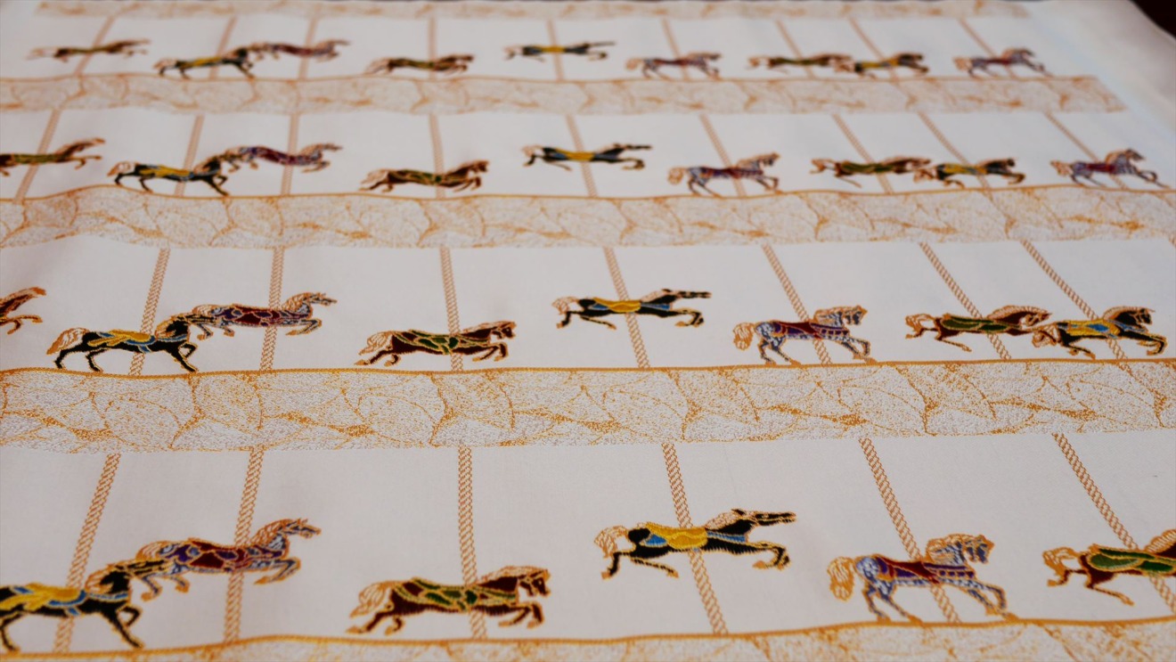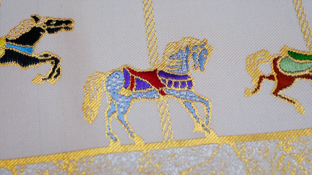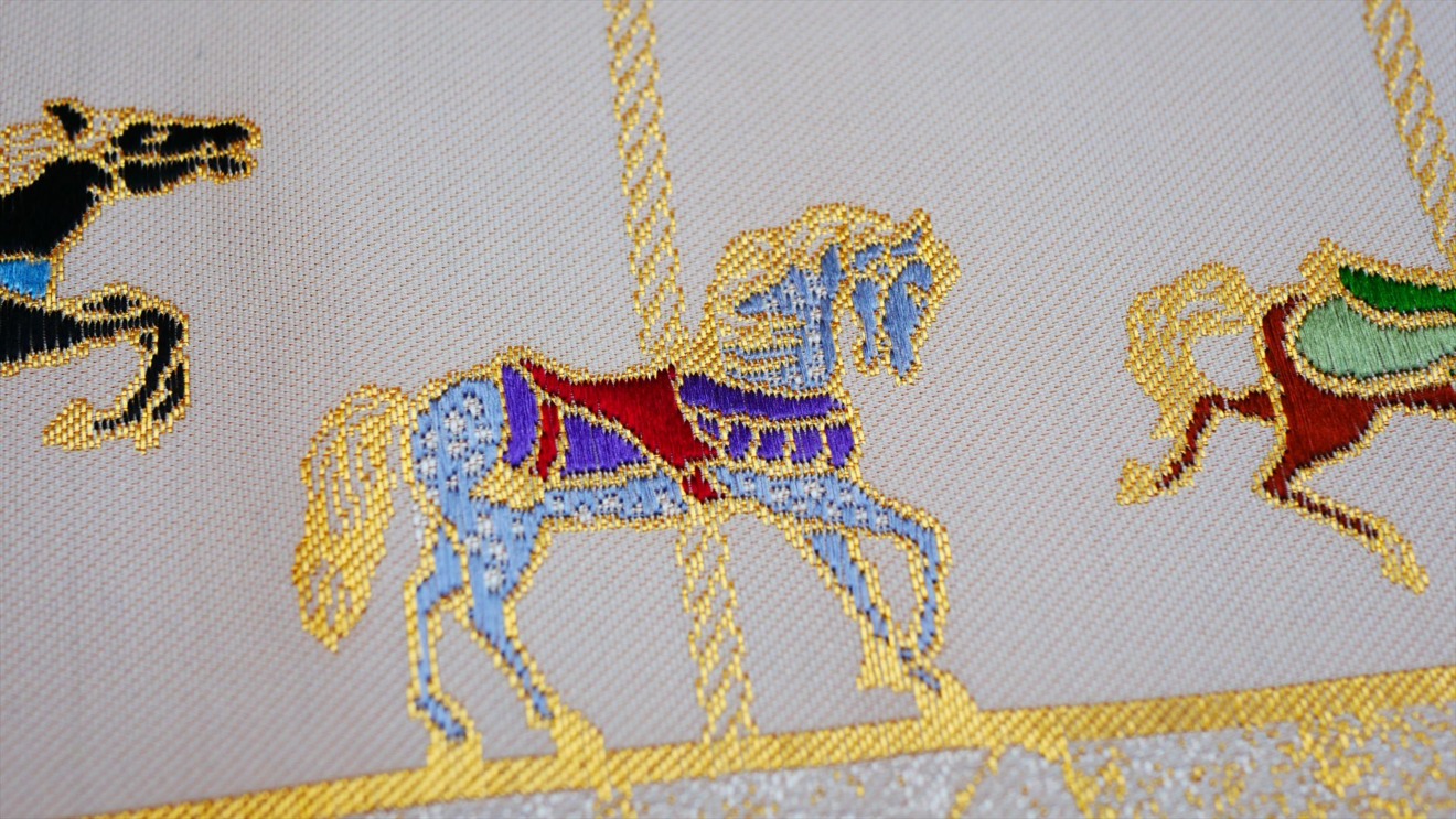 大倉陶園 × インテリア茶箱 × 西陣織「うまくゆく茶箱」|大倉陶園のアイコンとなっている「うまくゆく」を西陣織で再現しました。