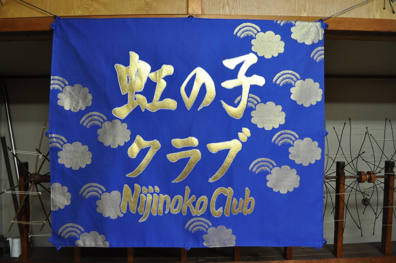 裏地部分は指導員が描いた「卒所した子供たちの名前」を虹色で織っています。