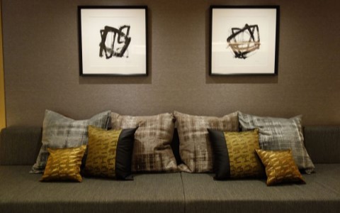 京都市のマンションにおける、室内飾のための西陣織金襴のクッションカバー制作事例です。