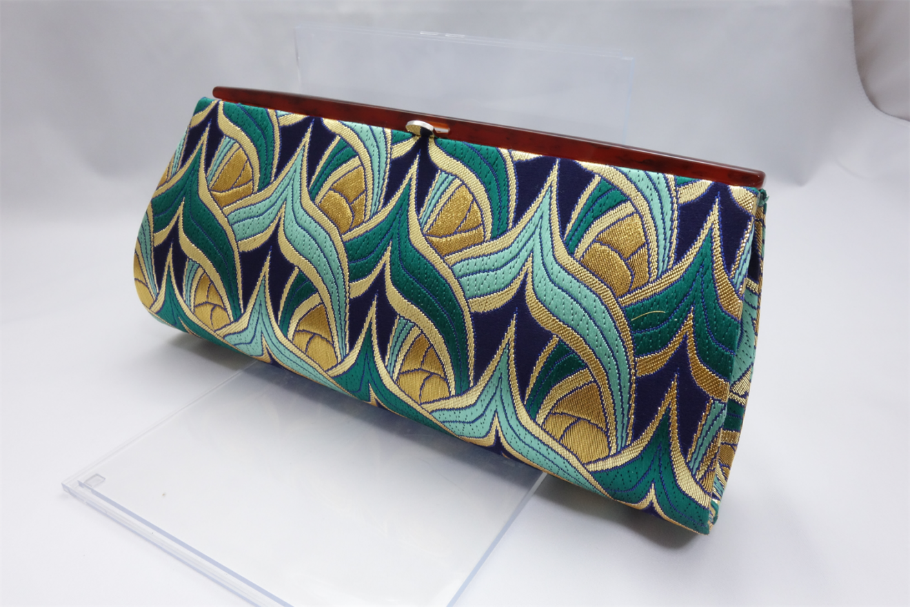 西陣織 金襴 正絹 本金引箔 三階菱紋様 クラッチバッグ