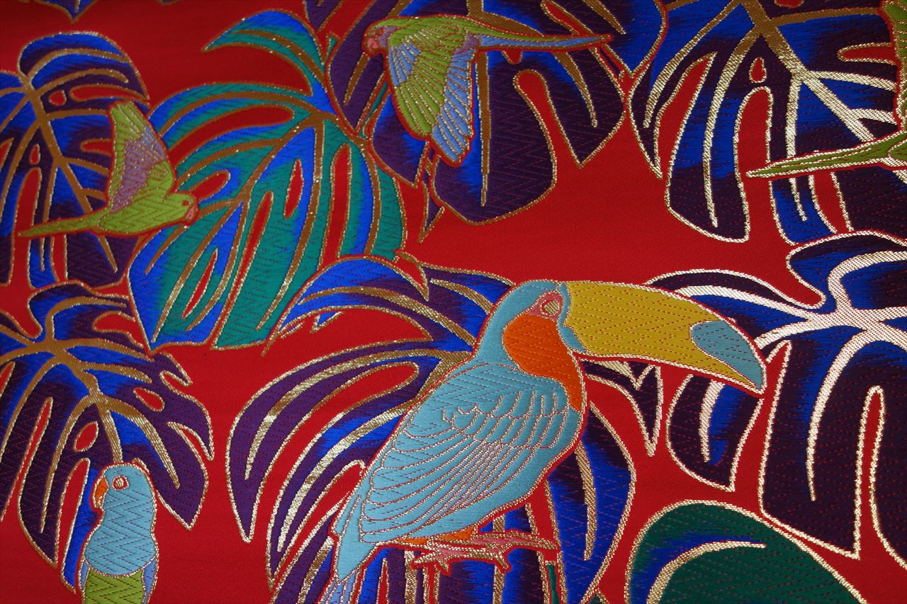 その葉で絹地を埋め尽くし、にぎやかに南の空を駆け巡る鳥達を遊ばせました。