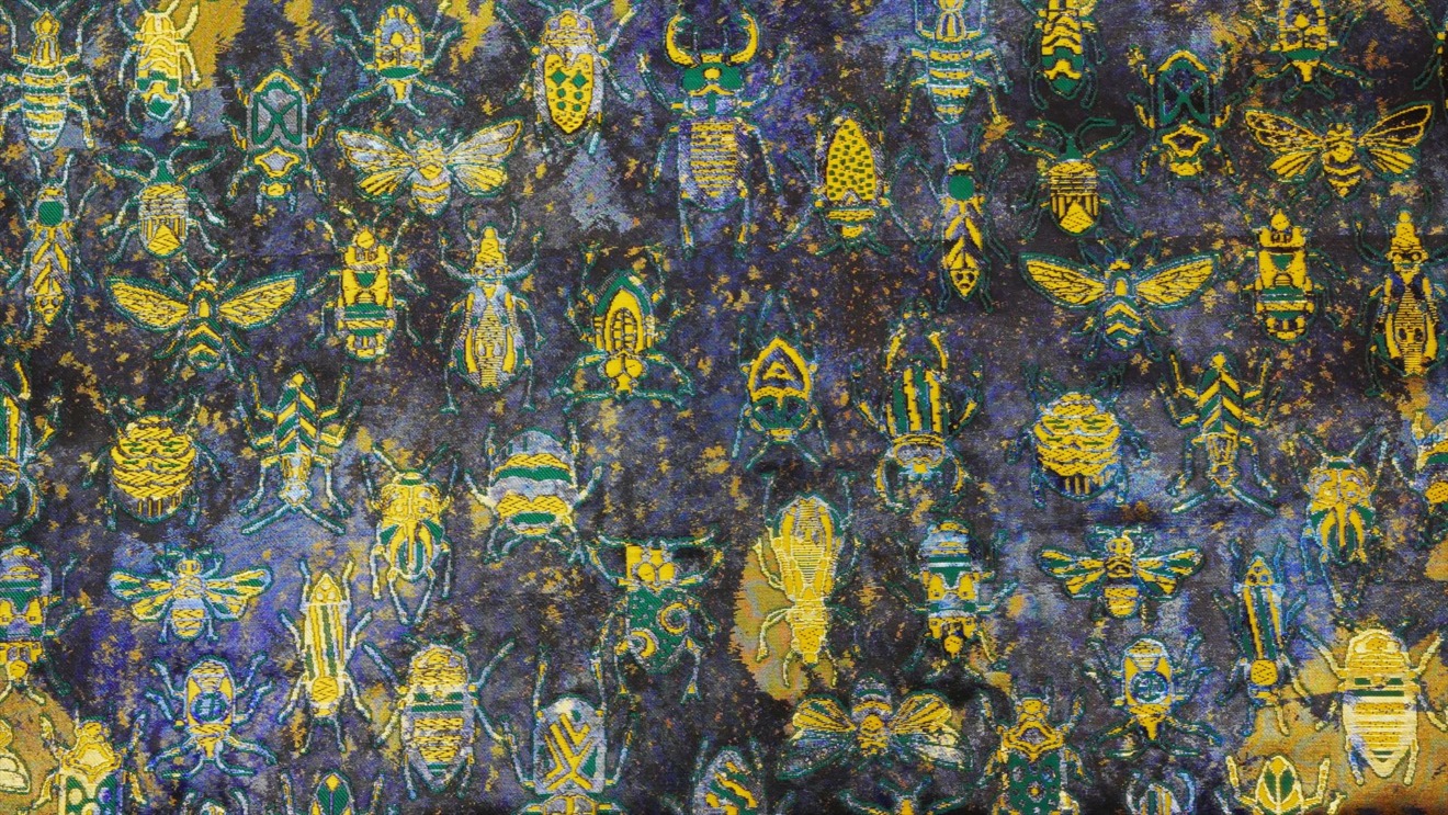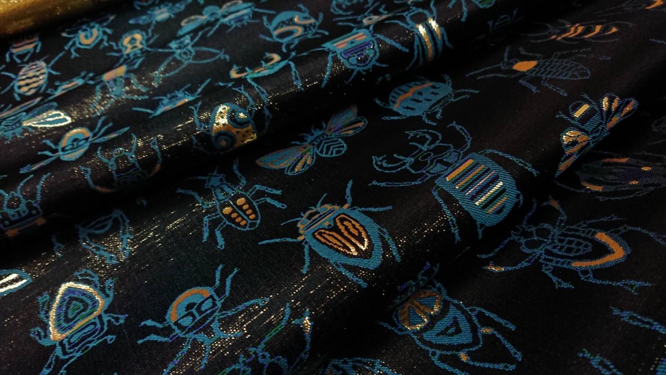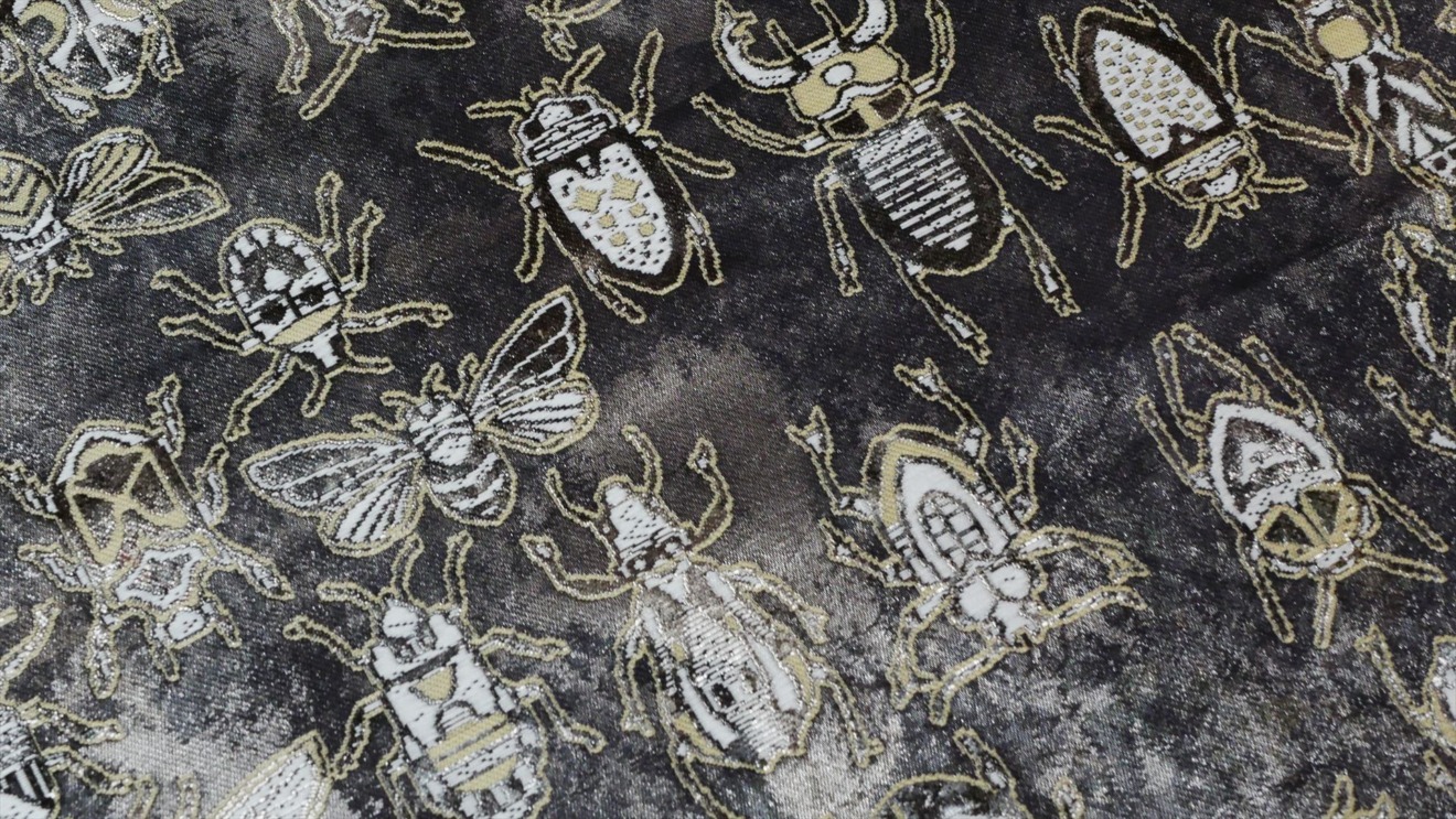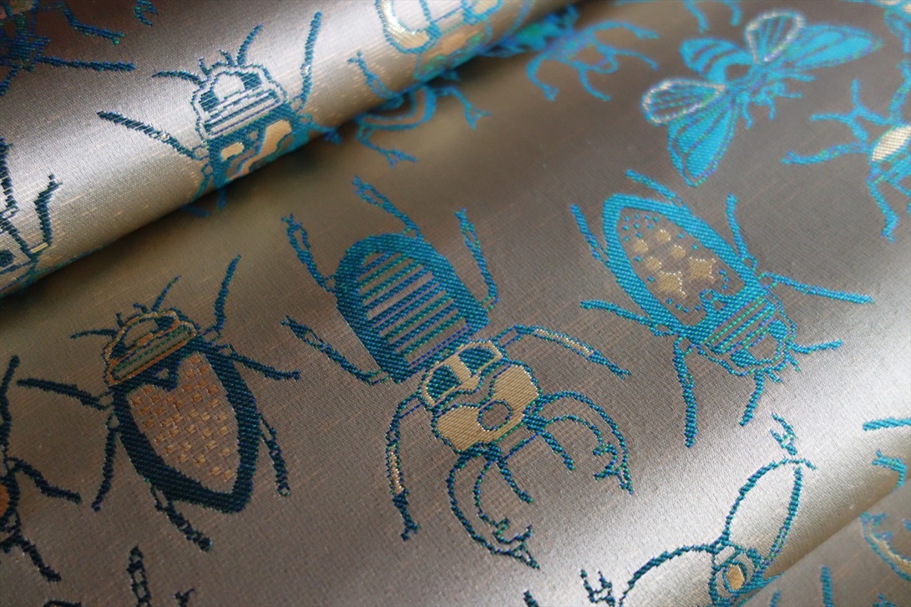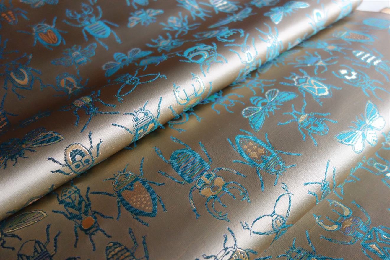 西陣織 絹織物 西陣織 金襴 INSECT 虫紋様 説明 追加情報 甲虫にそっと近づいて観察していると美しい造形、色合いに惚れ惚れとします。絹の艶で虫の輝きを表現しました。 デザイン 生物 地の色 薄白茶 西陣織 金襴関連商品