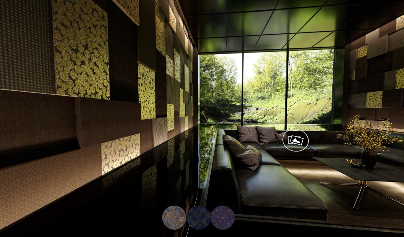 西陣織金襴「光る山」帝国ホテル 絵画堂ギャラリーでの展示