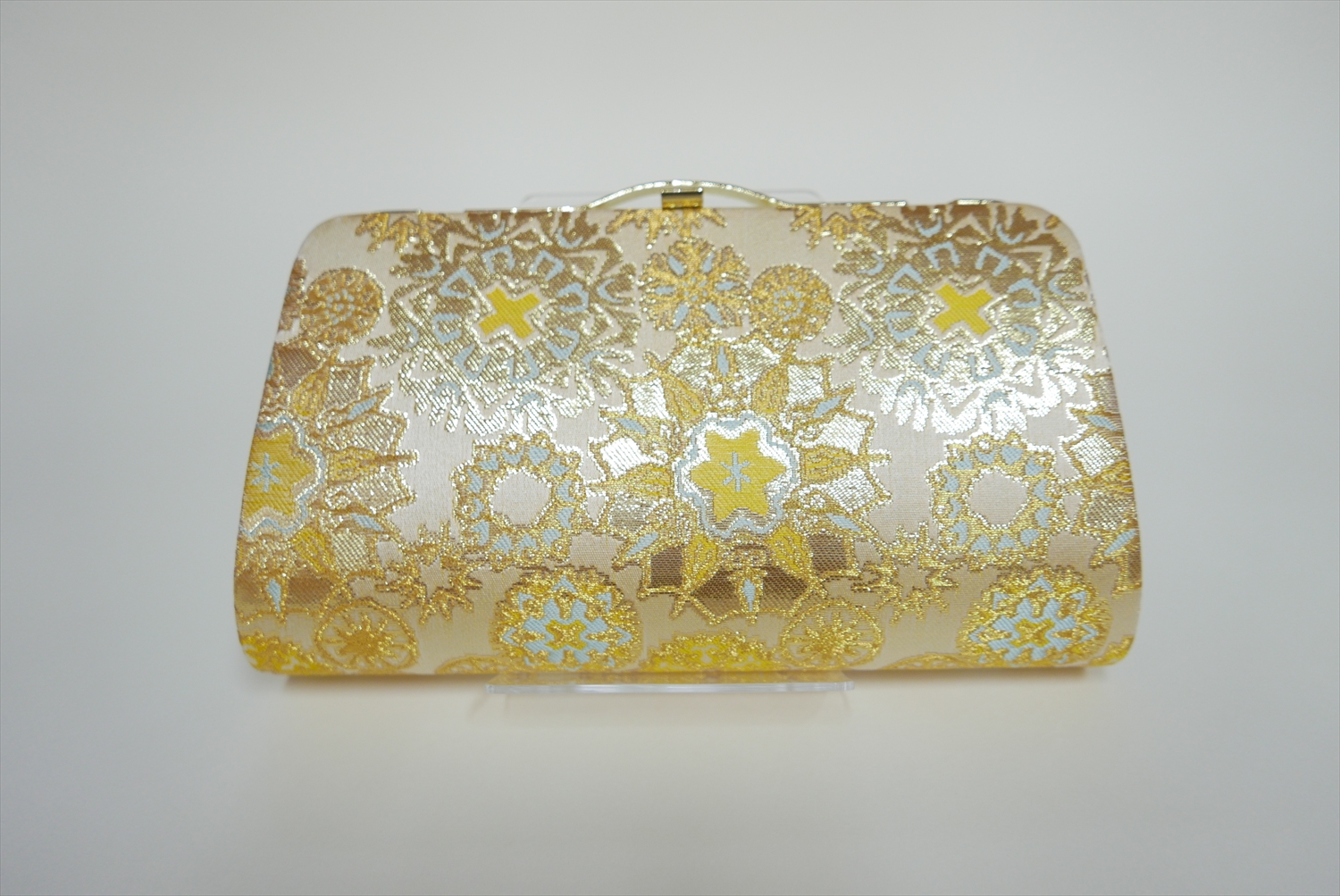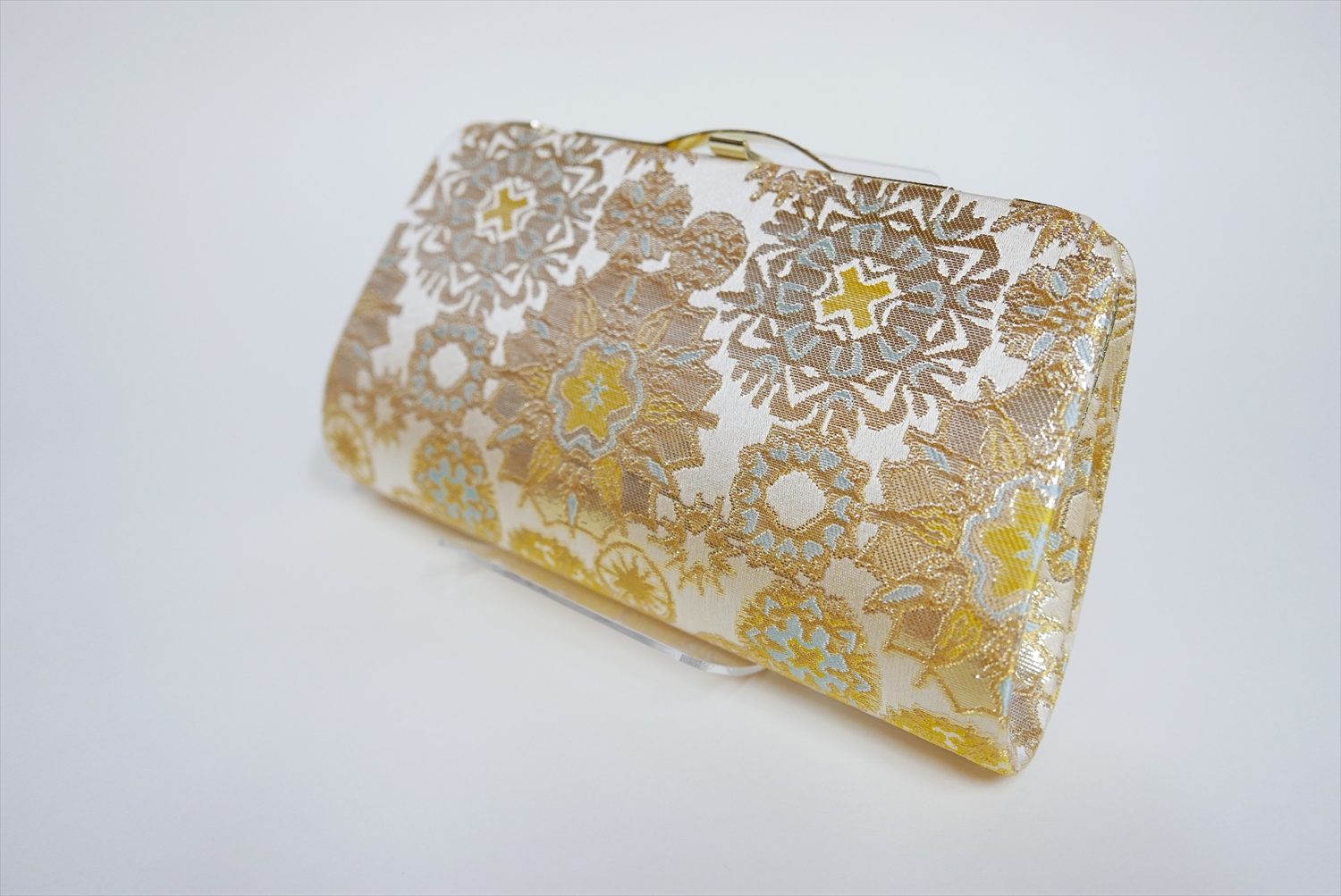 全正絹 西陣織 金襴 雪輪紋様 クラッチバッグC