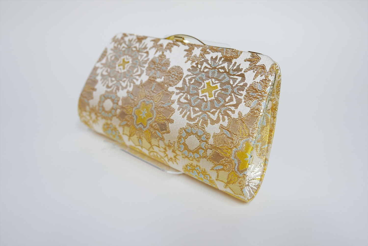 全正絹 西陣織 金襴 雪輪紋様 クラッチバッグ