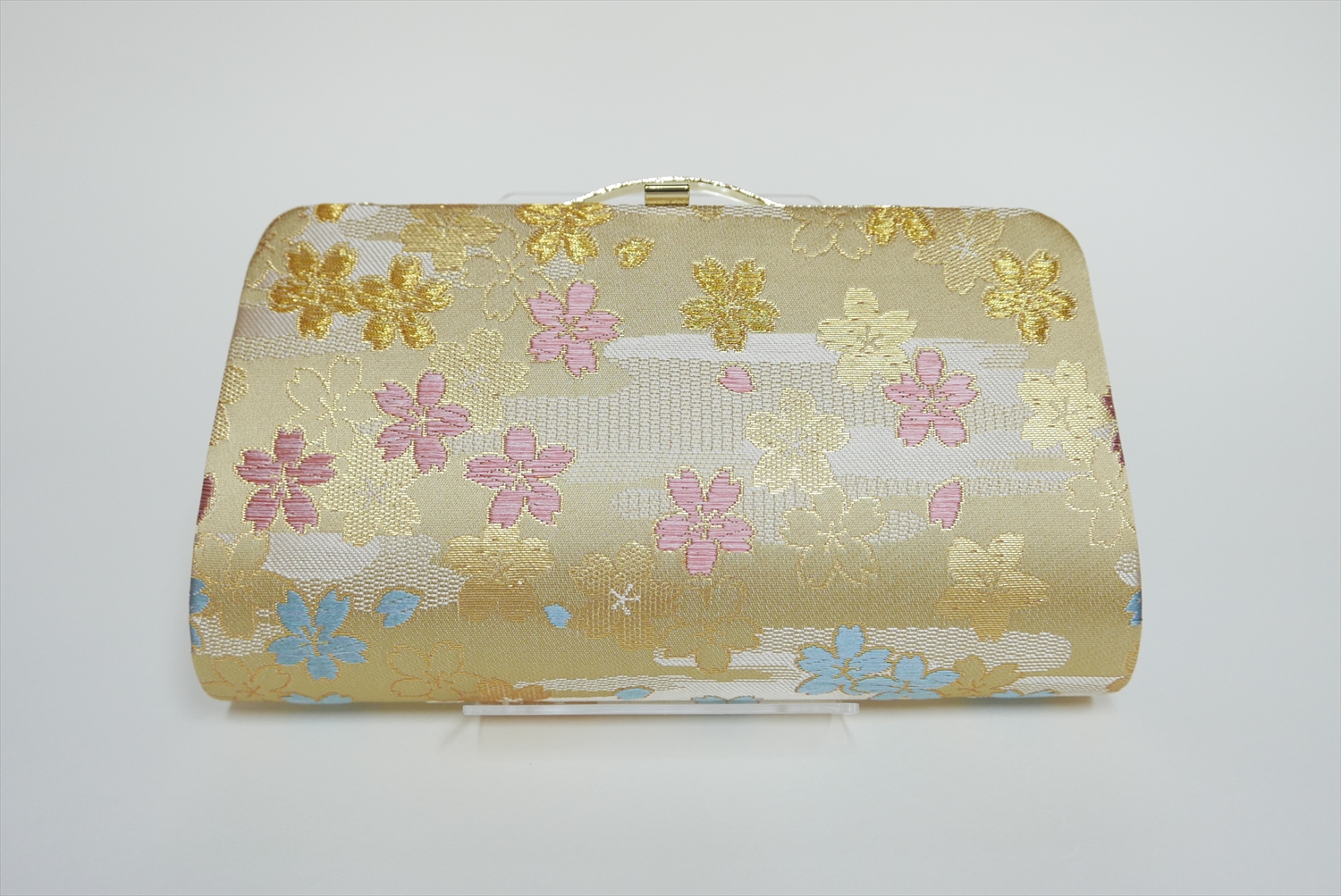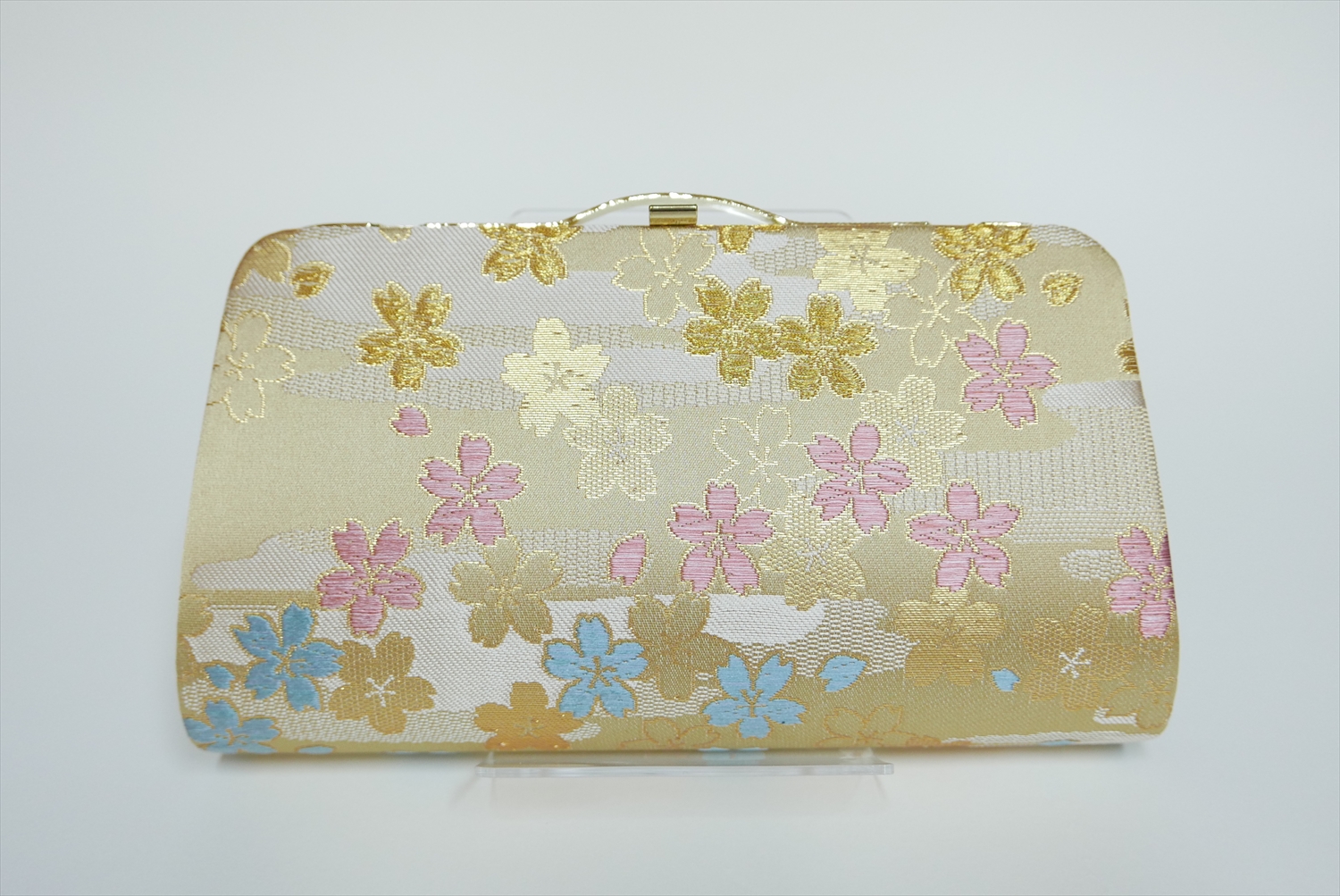 全正絹 西陣織 金襴 さくら紋様 クラッチバッグ