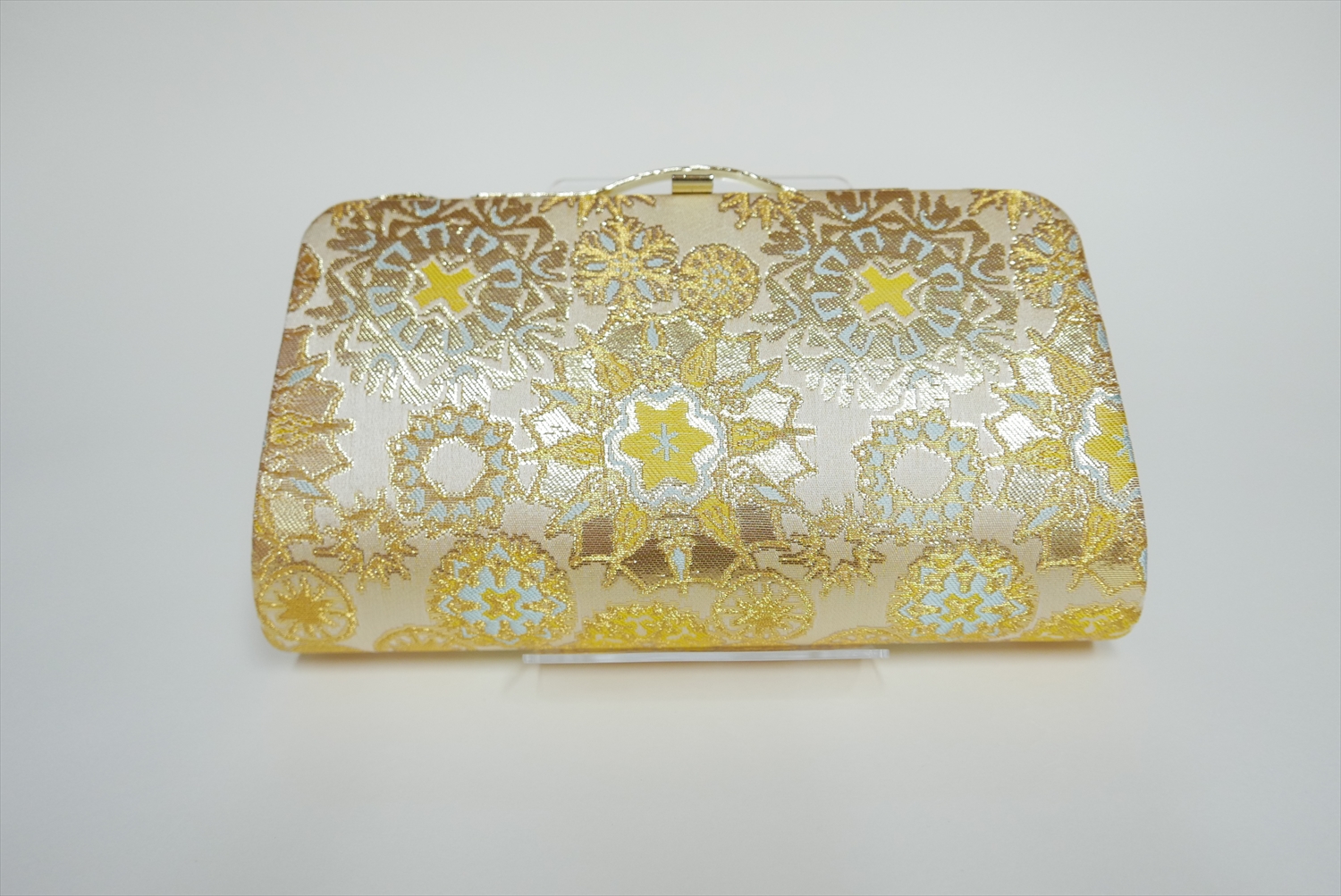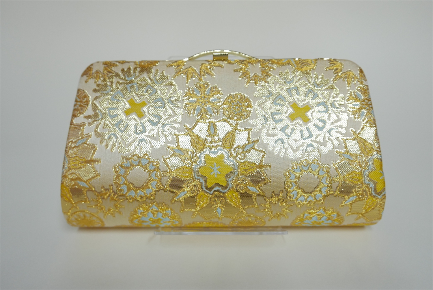 全正絹 西陣織 金襴 雪輪紋様 クラッチバッグE
