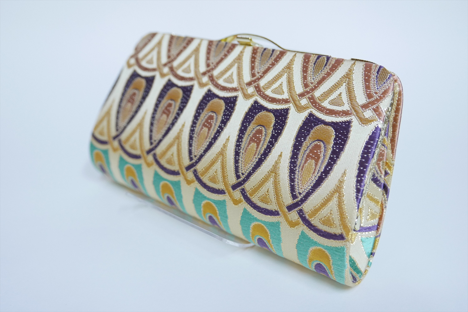 全正絹 西陣織 金襴 羽重ね紋様 クラッチバッグ