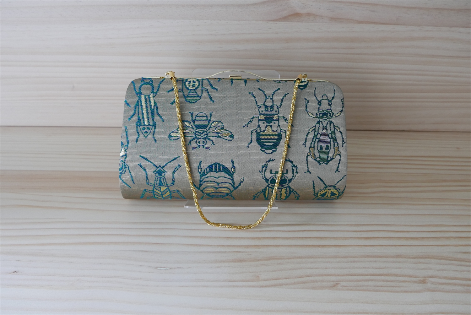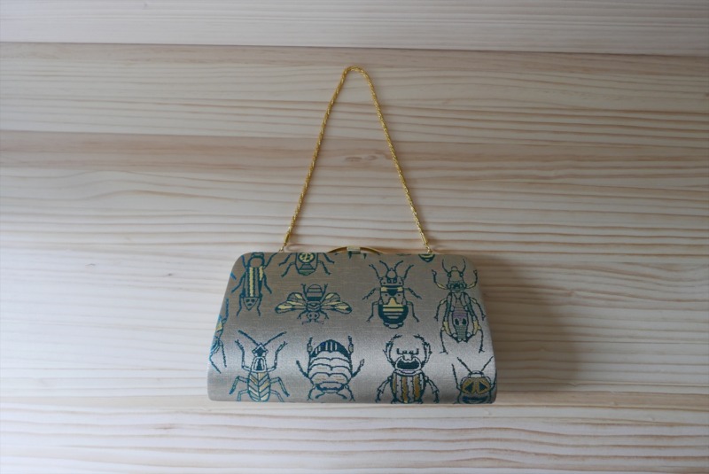 西陣織 クラッチバッグ 虫紋様(チェーンつき)