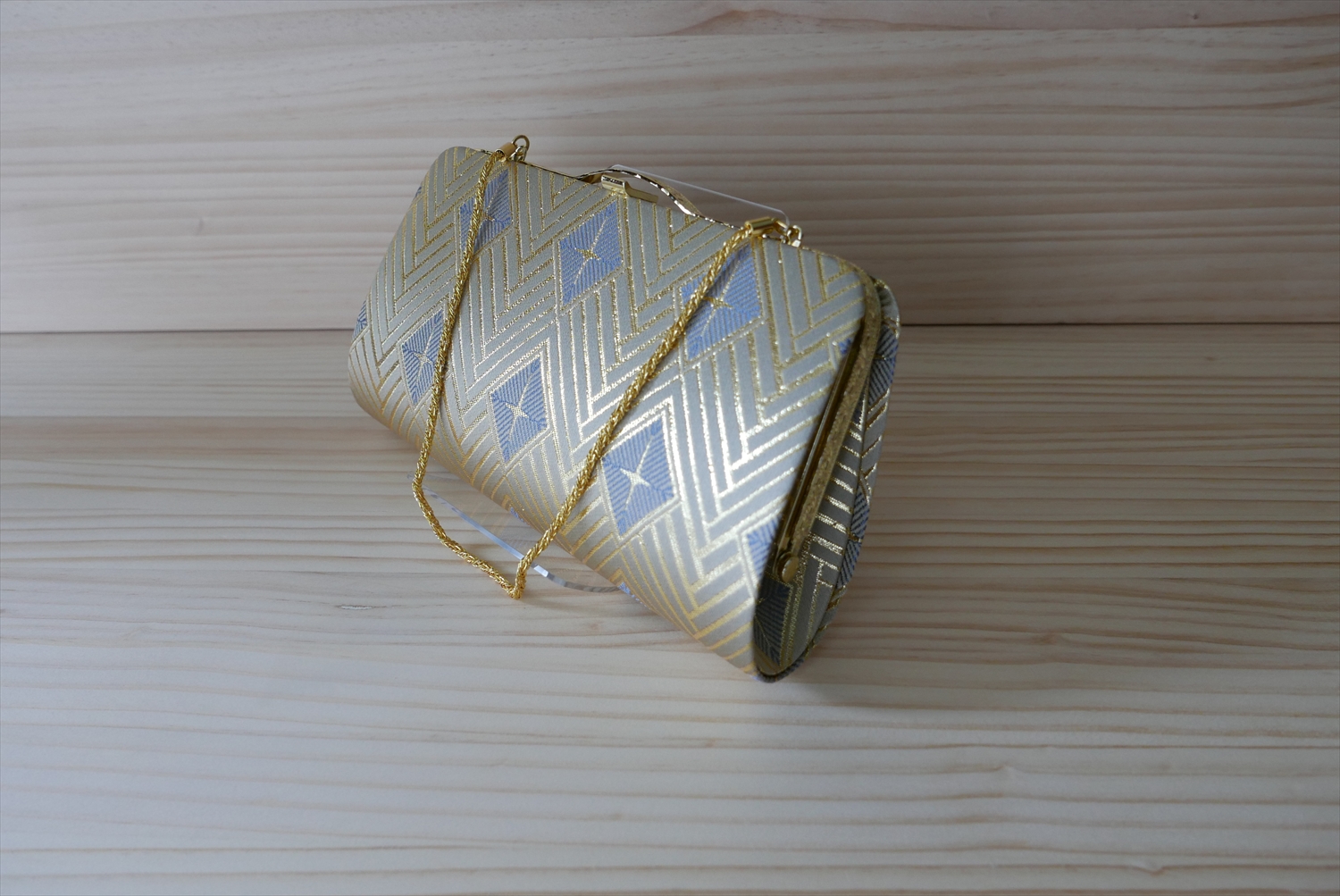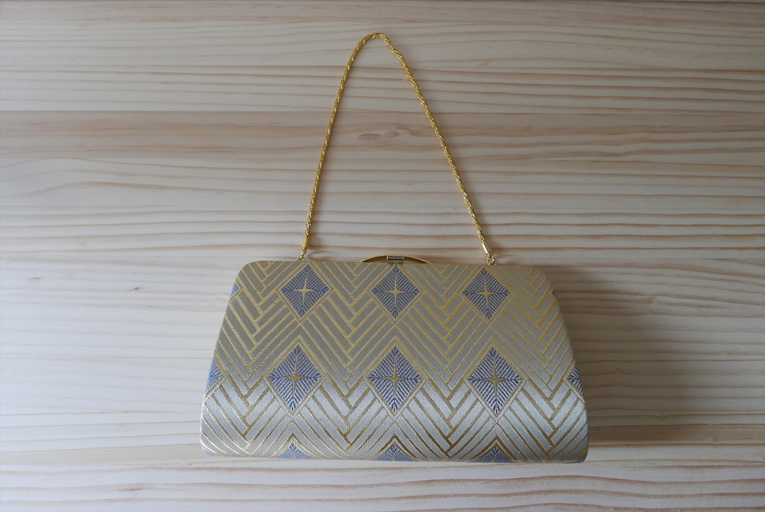 西陣織 クラッチバッグ 菱つなぎ紋様(チェーンつき)