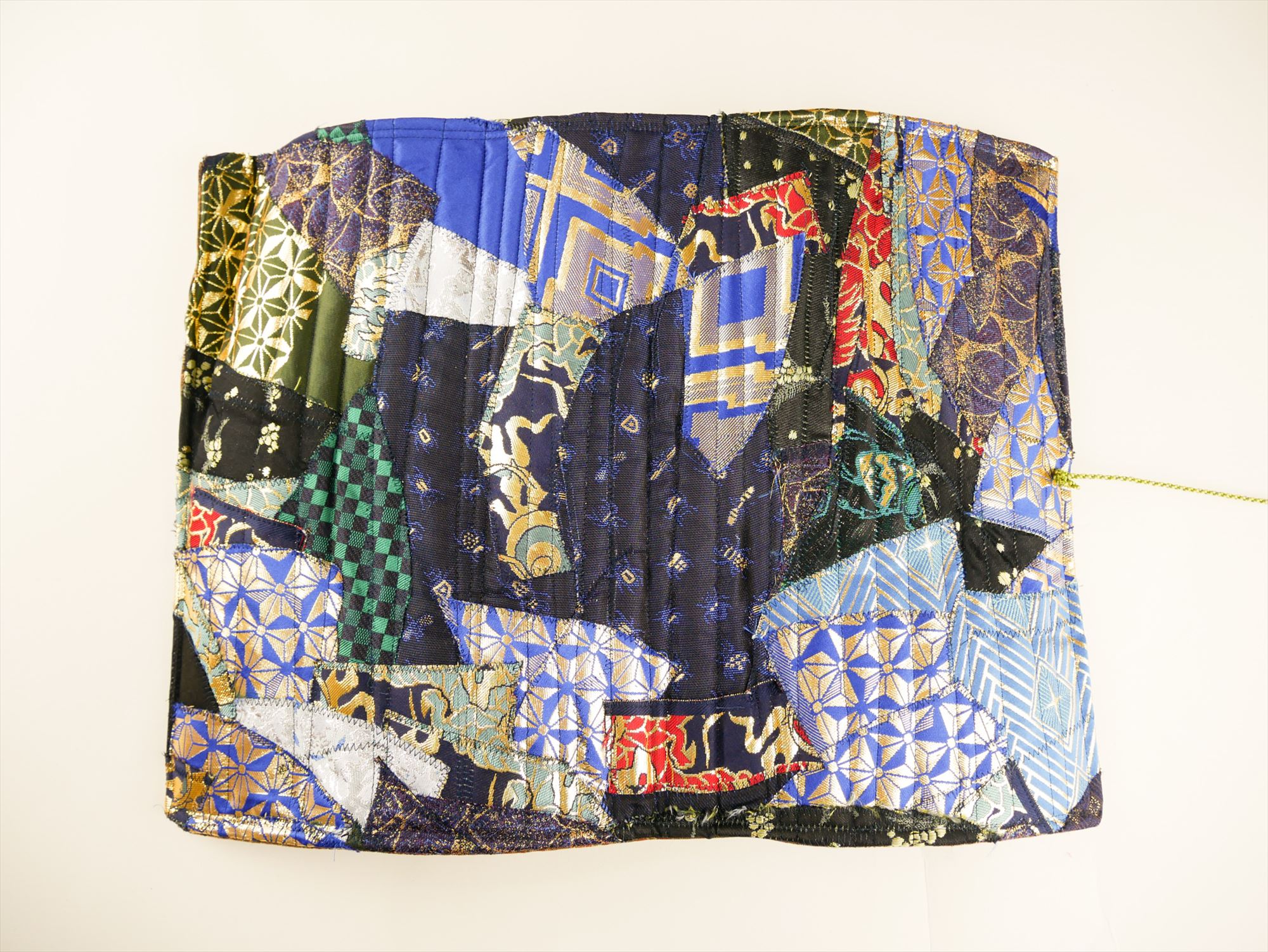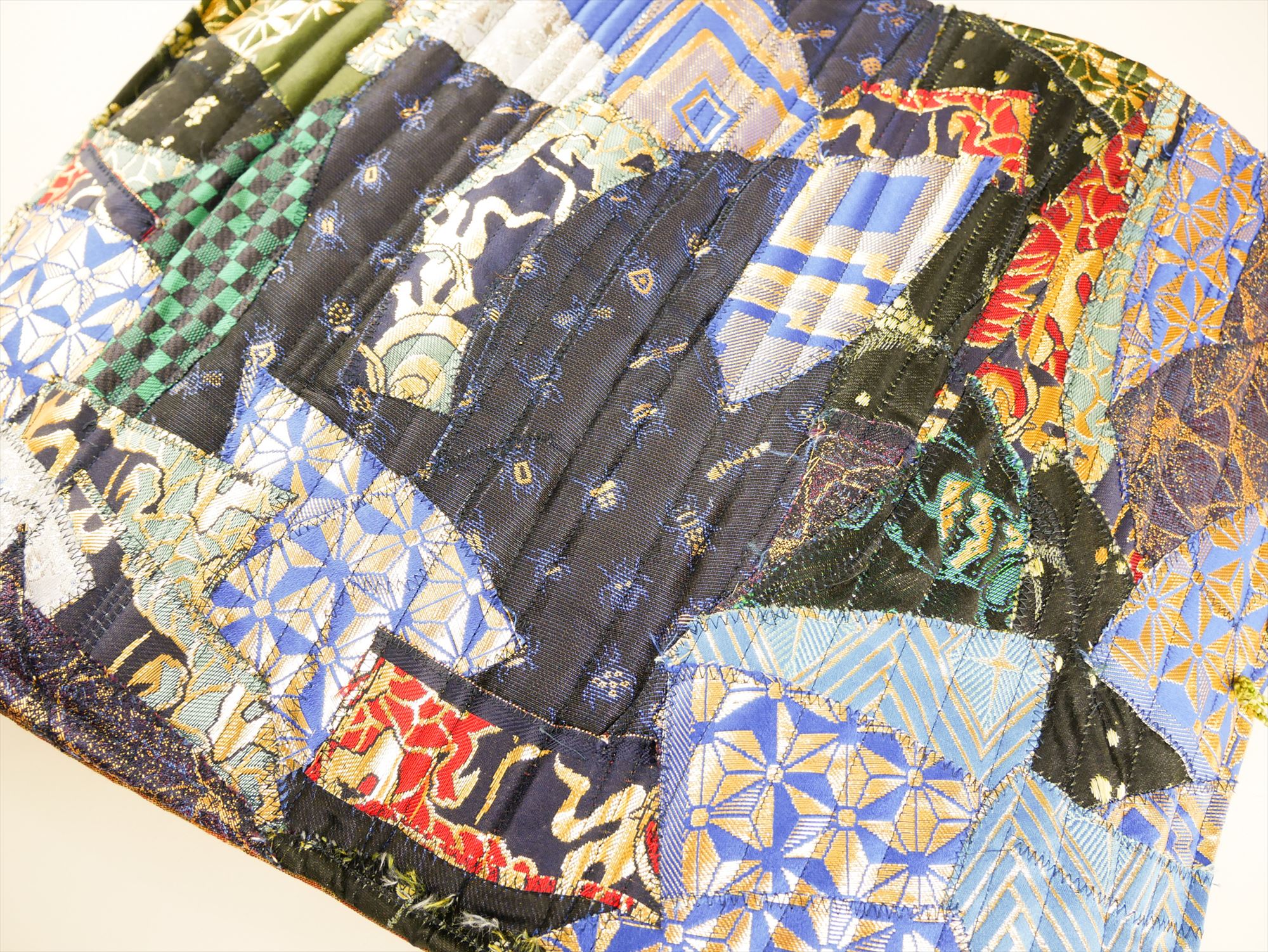 大事にとっておいた西陣織の端切れを縫い合わせクレイジーキルトに。