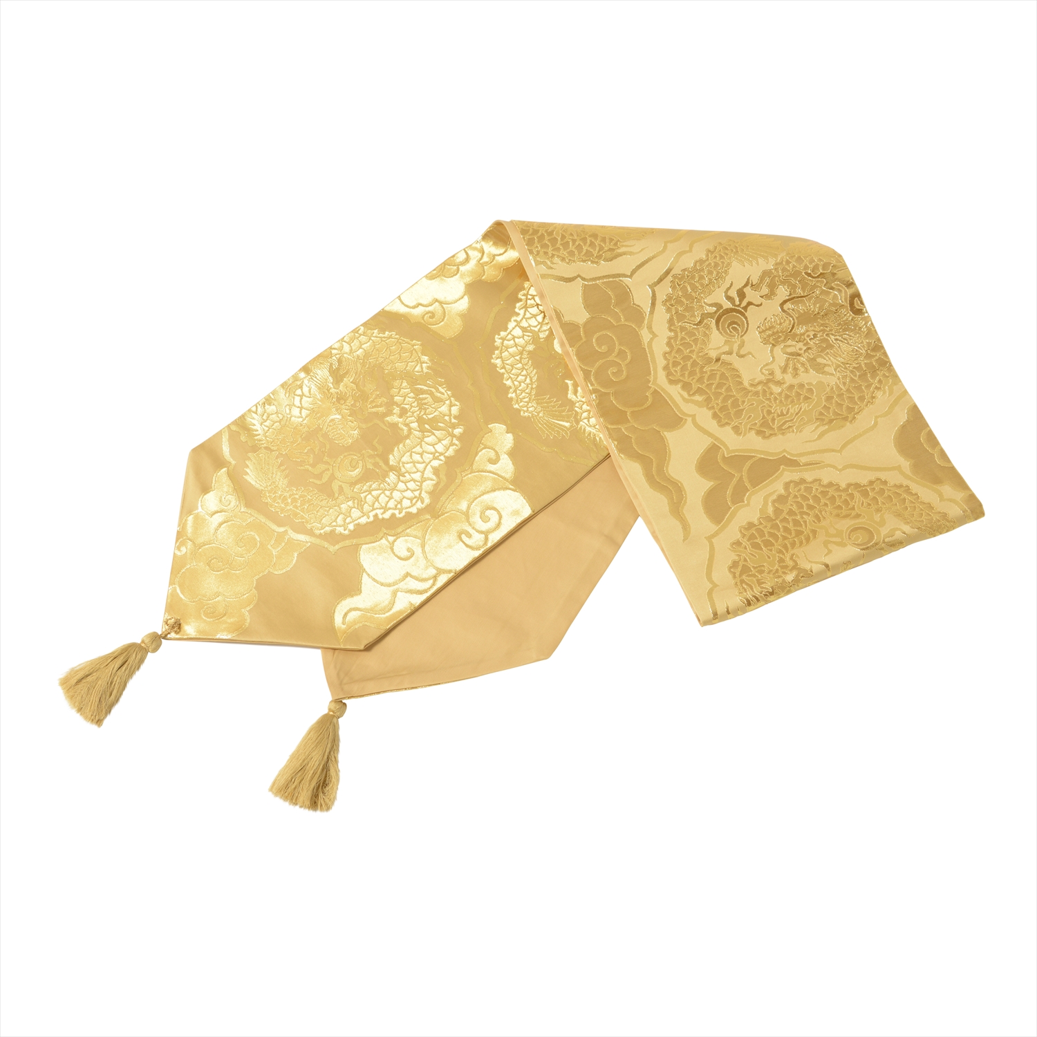 西陣金襴正絹 散雲丸龍テーブルランナー 白茶地