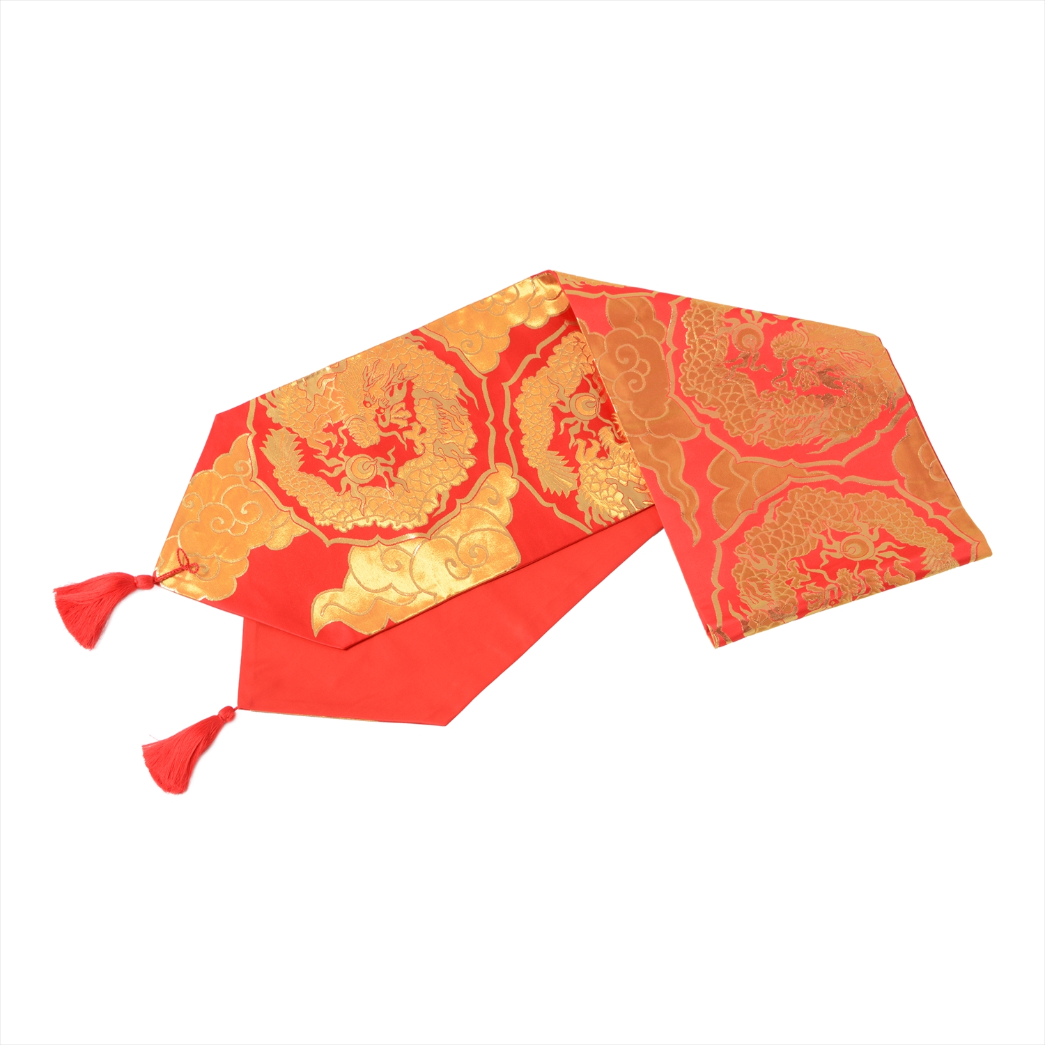 西陣金襴正絹 散雲丸龍テーブルランナー 赤地