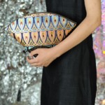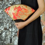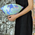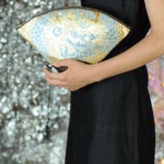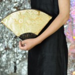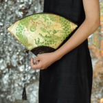 私が大好きな画家、グスタフ クリムトの「扇をもつ夫人」。扇は実用的でありながらとても装飾的な一品でもあります。その扇のようなきらびやかなバッグを作りたいと思いました。