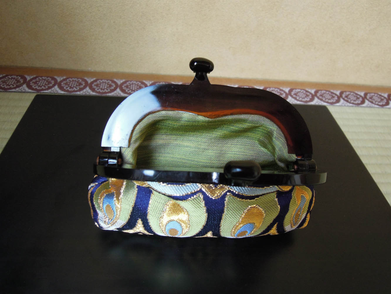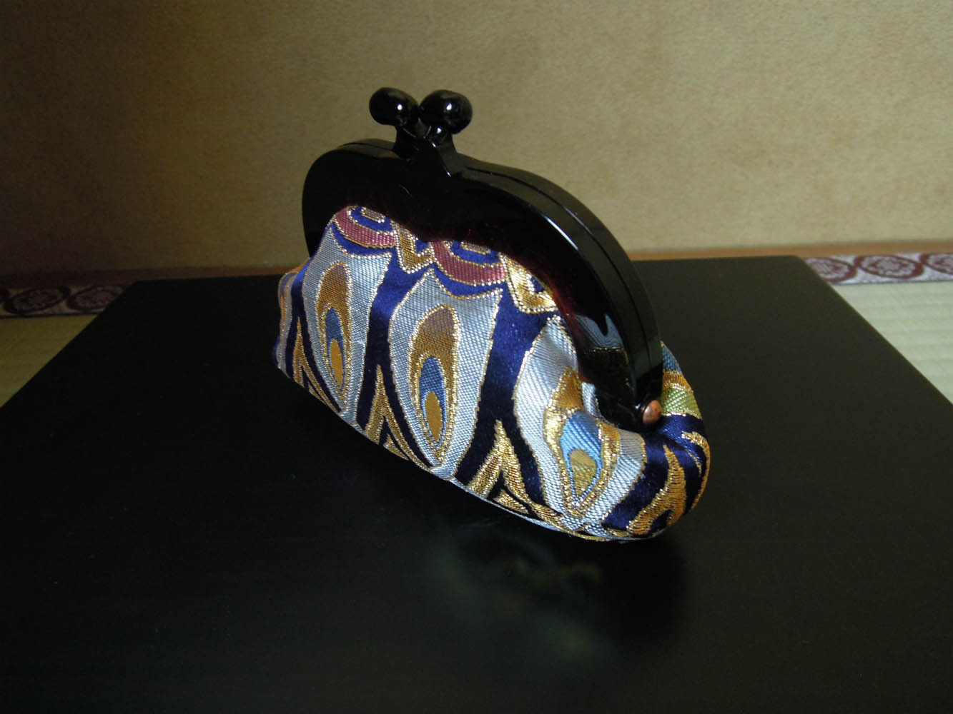 金襴織屋の岡本織物、弊社の西陣織の金襴地を使っがま口をお仕立ていたしました。