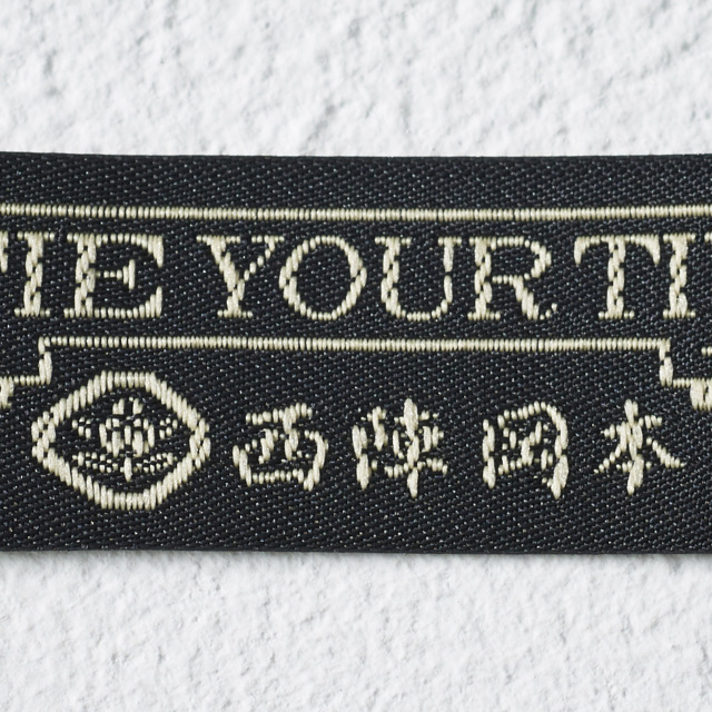 網代紋様に松の葉の意匠の菱を組み合わせました。水辺の「菱の実」に似ていることので「菱型」と名づけられた「菱」に、古来より親しまれてきた松の葉を入れて松葉菱としました。繰り返される網代、ヒシは繁殖力が強く子孫繁栄の意味があり、松は常緑樹な事から長寿の意味。この布を身にまとう方々の家内安全、無病息災を祈っての布地です。古来より金は魔物を跳ね返す力を持つといわれていますので、このキラキラ☆で跳ね返していただけたらと思っております。