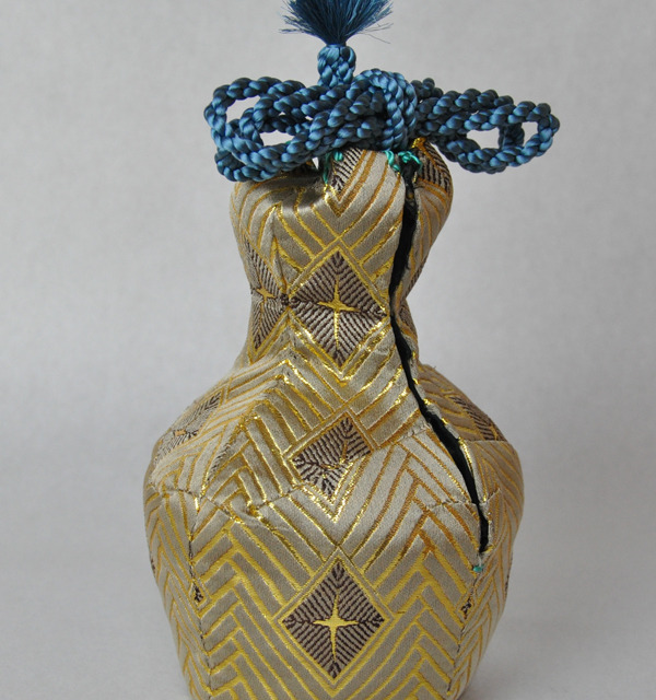 初めての試みで、ゴムも家にあった太めのゴムを使っています。この時はまだ販売するつもりは全くありませんでした。ただ、金襴屋で「世界一の西陣織金襴ハードユーザー」を自負している身としてマスクも金襴でいこうかなと思っただけでした。
