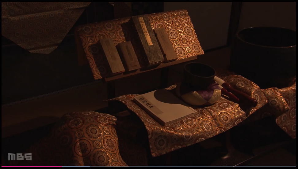 こちらは京都知新で放送していただいた弊社が織った絹織物で仕立てた打敷や戸帳などのお寺の装飾布です。