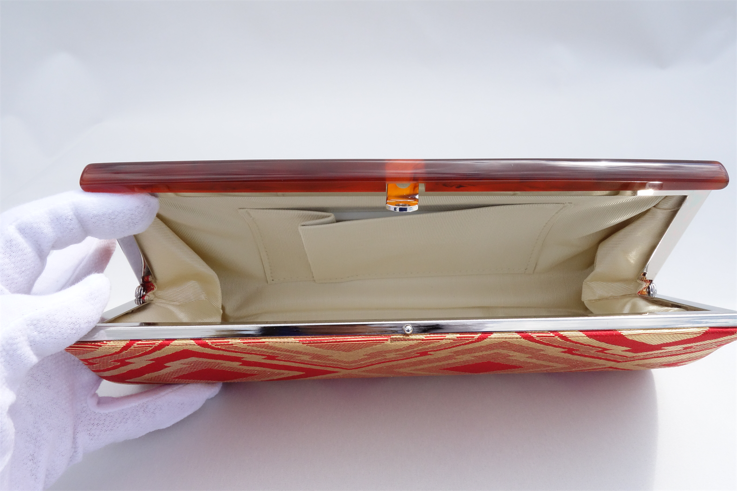 こちらのページに詳しいことが書いてあります。西陣織金襴 全正絹 クラッチバッグ