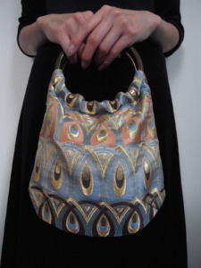 西陣岡本の西陣織、金襴の正絹地で金襴でバッグを仕立てて頂きました。趣味で縫い物をしている方ですが、とても可愛い!